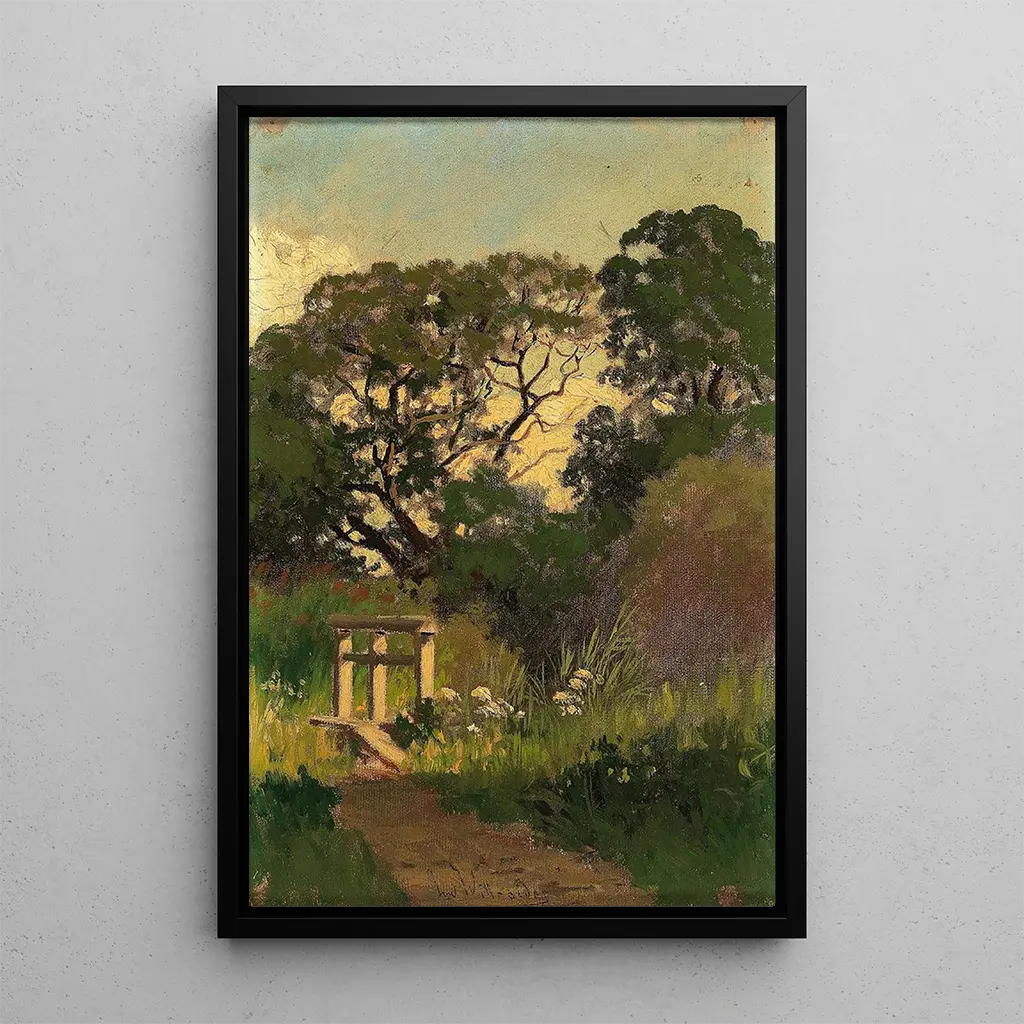 Målning Prairie med gångbro över bäck - Ludwig Willroider | Konsttryck