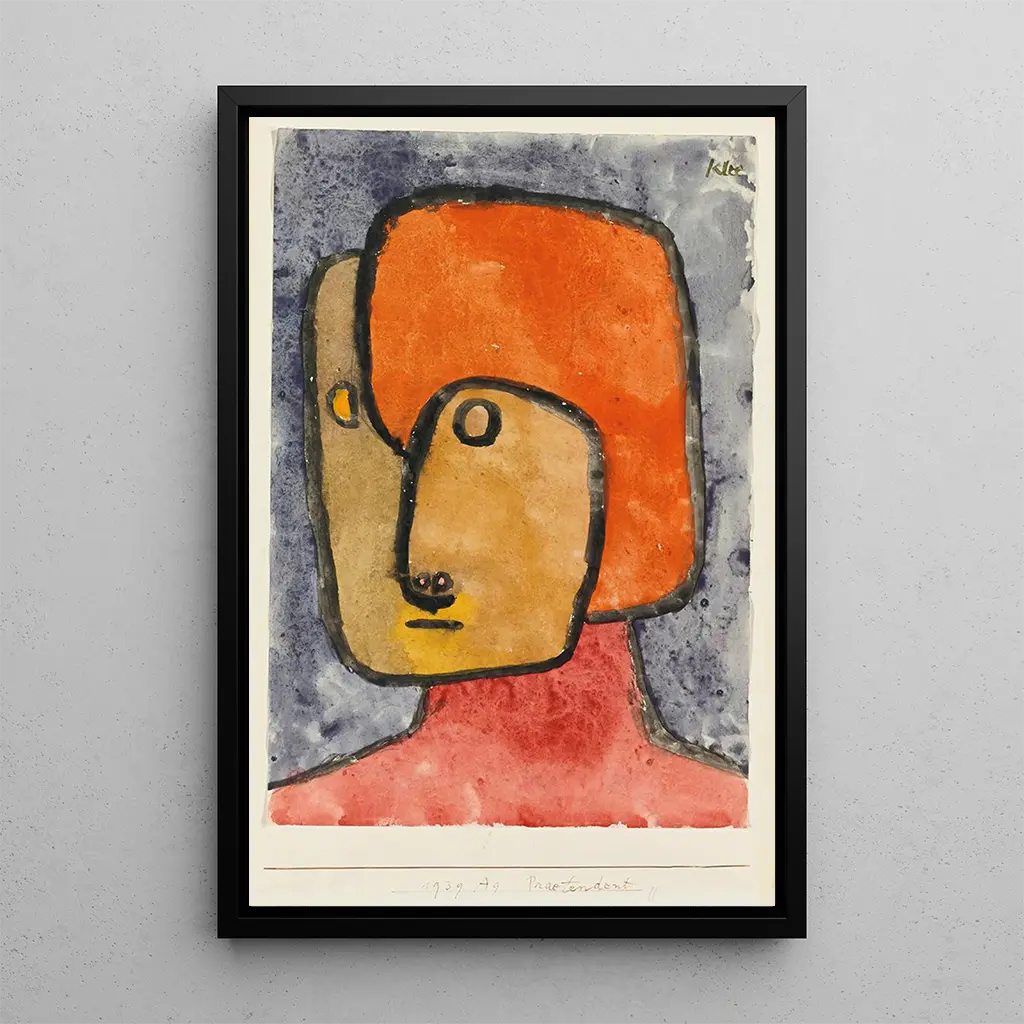 Konsttrycket av "Pretentiös pretentiös" av Paul Klee är ett verk som omedelbart fångar ögat med sina livfulla färger och stiliserade former. Klee, med sin skarpa känsla för ironi, skildrar en excentrisk figur, både komisk och tragisk. De lysande nyanserna, kombinerade med karikatyrmässiga drag, skapar en lekfull atmosfär samtidigt som det inbjuder till en djupare reflektion över mänsklig fåfänga. Denna målning, rik på symbolism, väcker universella teman som illusion och ytlighet, samtidigt som den erbjuder en fängslande visuell upplevelse.