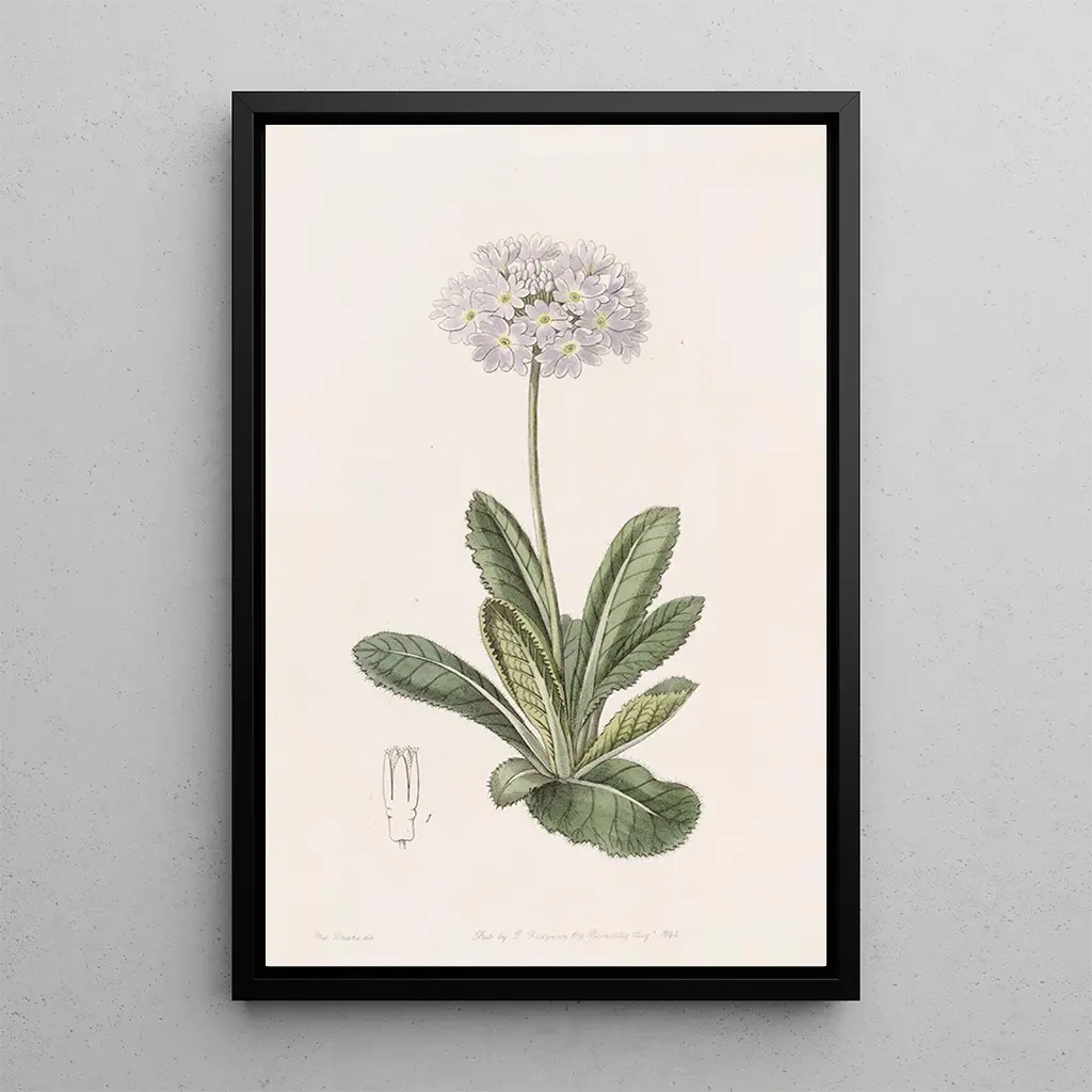 La konsttryck av verket "Primevère à petites dents" av Sydenham Edwards fördjupar oss i en botanisk värld fylld av mjukhet. Pastellfärger, från mjuk gul till delikat grönt, flätas samman för att skapa en lugn och rofylld atmosfär. Detaljernas precision, kännetecknande för den naturalistiska stilen, lyfter fram varje kronblad och varje blad, som om verket vore ett fönster öppet mot en hemlig trädgård. Denna duk inbjuder till eftertanke och erbjuder en visuell flykt som hyllar naturens skönhet.