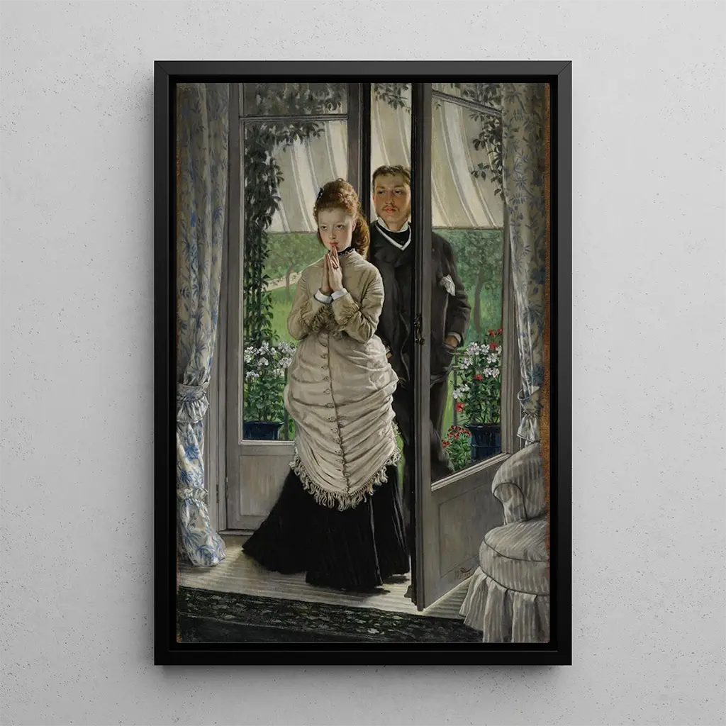 James Tissot, fransk konstnär från 1800-talet, är erkänd för sina verk som utforskar borgerligt liv och mänskliga relationer. Påverkad av impressionismen utvecklar han en unik stil som kombinerar precision och känslighet. Tissot tillbringade en del av sin karriär i London, där han påverkades av den brittiska kulturen och de victorianska sederna. Hans narrativa tillvägagångssätt och uppmärksamhet på detaljer gör honom till en oumbärlig konstnär från sin tid, vars verk fortsätter att inspirera och fascinera. "La Proposition" passar perfekt in i denna tradition och illustrerar komplexiteten i mänskliga interaktioner.