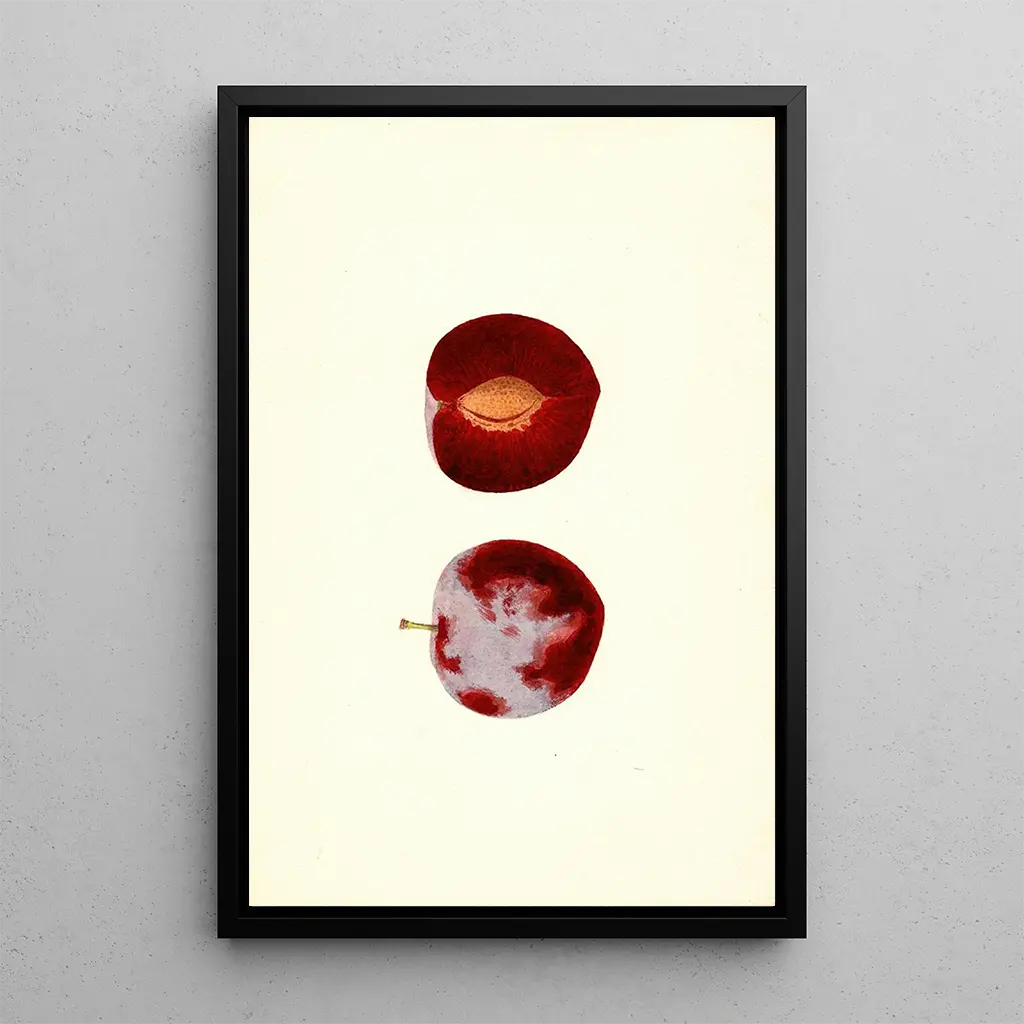 Konsttrycket Prunus domestica Flaming Delicious framkallar en livfull värld där naturen avslöjar sin fulla prakt. De rika och mättade nyanserna i detta konsttryck fångar själva essensen av plommon, med nyanser som sträcker sig från djup lila till gyllene gult. Konstnärens teknik, som förenar realism och impressionism, skapar en varm och inbjudande atmosfär, som bjuder in betraktaren att fördjupa sig i en fruktig värld. Varje detalj, från reflektioner på fruktens skal till delikata skuggor, vittnar om ett enastående hantverk, vilket förvandlar en enkel stilleben till ett levande konstverk.