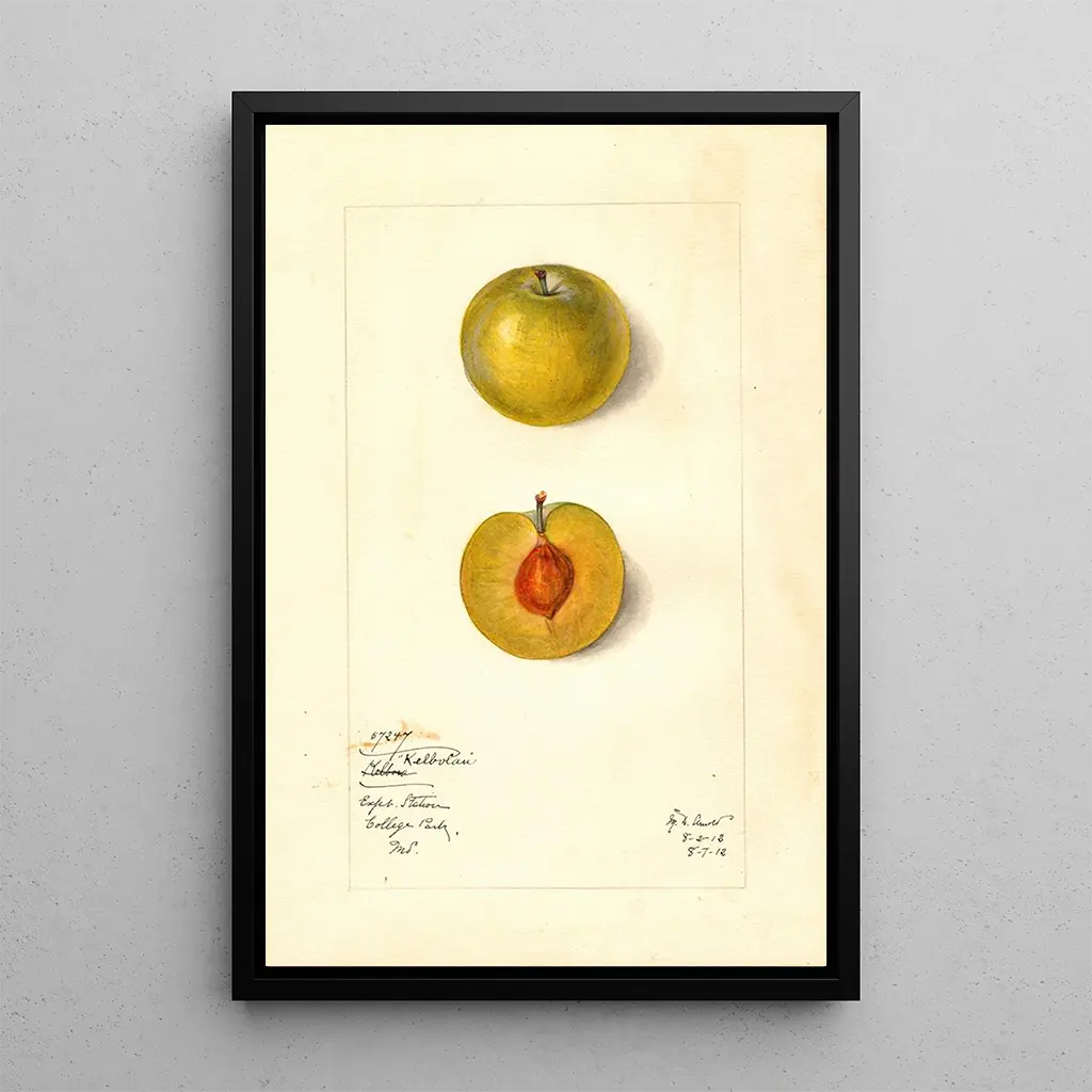 Konsttrycket av Prunus domestica Kelbolan är ett värdefullt tillskott till varje konstsamling. Perfekt för att pryda ett vardagsrum, ett kontor eller ett sovrum, ger denna duk en touch av natur och färg till ditt utrymme. Dess reproduktionskvalitet garanterar en anmärkningsvärt trogen återgivning av den ursprungliga konstnärliga detaljen, samtidigt som den erbjuder en obestridlig estetisk attraktion. Genom att välja detta verk berikar du din inredning med ett konstnärligt och inspirerande element, som hyllar frukternas skönhet och den talangfulla Mary Daisy Arnold.