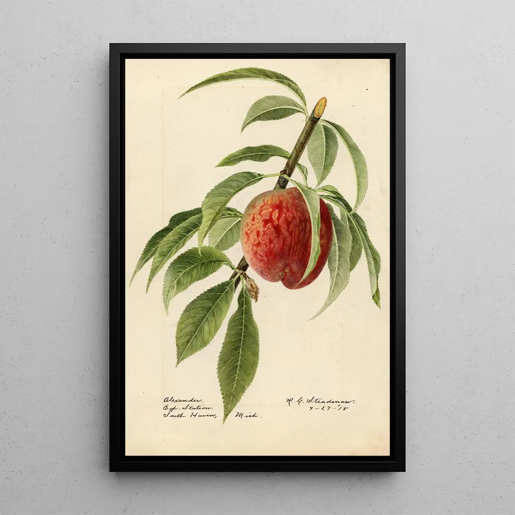 Konsttrycket av Prunus persica Alexander är ett perfekt val för att försköna ditt hem. Oavsett om det är i vardagsrummet, på kontoret eller i sovrummet, tillför denna duk en känsla av friskhet och poesi. Dess utskriftskvalitet garanterar trohet mot de ursprungliga färgerna, så att du kan njuta fullt ut av dess estetiska charm. Genom att välja detta konsttryck ger du ditt utrymme en lugnande och inspirerande atmosfär, samtidigt som du hyllar naturens tidlösa skönhet.