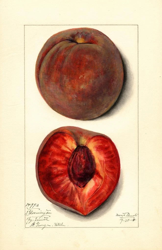 Målning Prunus persica Bloomington - Mary Daisy Arnold