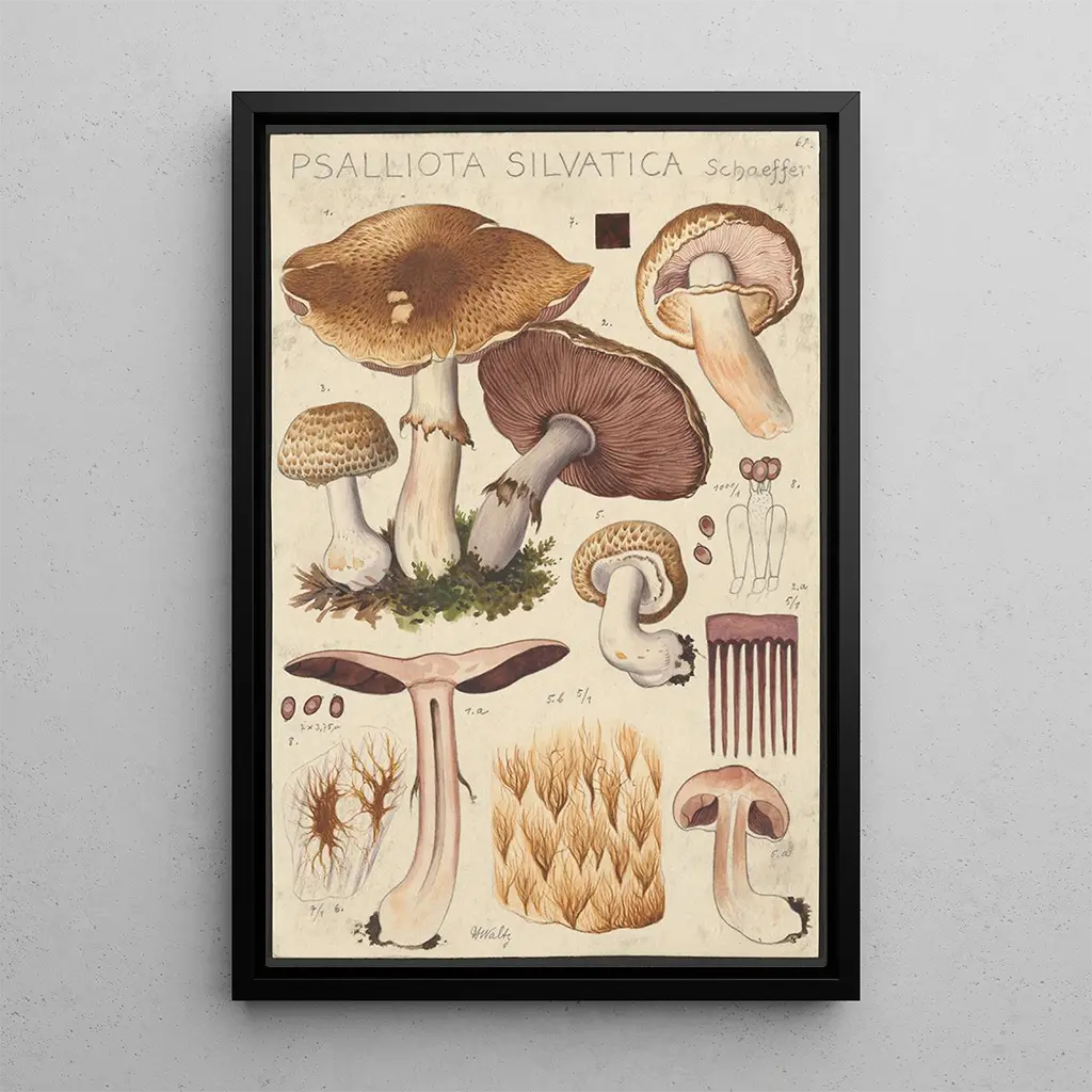Konsttrycket av Psalliota silvatica Schaeffer är ett perfekt dekorativt val för att berika ditt hem, oavsett om det är i ett vardagsrum, ett kontor eller ett sovrum. Dess tryckkvalitet garanterar en enastående trohet mot färger och detaljer i originalverket, vilket tillför en touch av elegans och natur till ditt utrymme. Den estetiska dragningskraften hos denna canvas gör den till ett samtalsämne, samtidigt som den skapar en lugnande och inspirerande atmosfär. Att välja detta konsttryck är att välja att integrera ett konstverk som hyllar naturens skönhet och samtidigt passar perfekt in i en modern eller klassisk inredning.