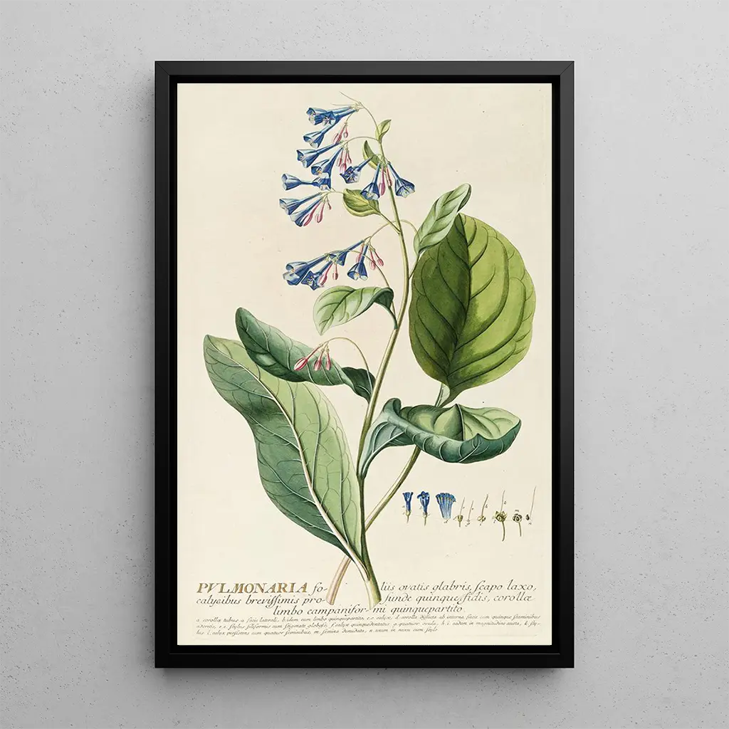 Att välja ett konsttryck av Pulmonaria är att välja ett dekorativt föremål som tillför en frisk och naturlig känsla till ditt hem. Oavsett om det är i ett vardagsrum, ett kontor eller ett sovrum, passar detta konsttryck harmoniskt in i olika inredningsstilar. Kvaliteten på trycket garanterar en trohet mot färger och detaljer i det ursprungliga verket, vilket gör det möjligt att njuta av Ehrets raffinerade estetik dagligen. Genom att lägga till detta konsttryck i din samling ger du ditt utrymme en lugnande och inspirerande atmosfär, samtidigt som du hyllar den tidlösa skönheten hos flora.