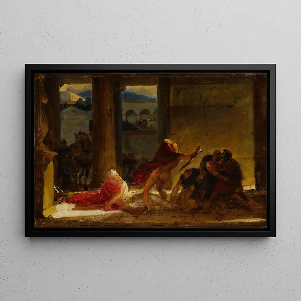 La mort de Pyrrhus : ett tragiskt drama fruset i tiden I detta slående konsttryck, "La mort de Pyrrhus", fångar konstnären det ödesdigra ögonblicket då Epiros kung möter sitt öde. De mörka färgerna och de slående kontrasten framkallar en atmosfär av förtvivlan och tragedi. Figurerna, återgivna med en anmärkningsvärt precision, tycks vibrera av känsla, medan den dynamiska kompositionen guidar betraktarens blick genom scenen. Konstnärens teknik, som skickligt blandar clair-obscur, förstärker den dramatiska intensiteten i detta konsttryck, vilket gör varje detalj till ett väsentligt narrativt element. Denna tavla, en äkta inbjudan till eftertanke, fördjupar oss i en mytologisk berättelse där ödet tvingar sig på med kraft. La döden av Pyrrhus : ett konstnärligt arv fyllt av historia "La döden av Pyrrhus" är verket av en konstnär vars namn klingar med storheten av neoklassicismen. Denna rörelse, som blomstrade i slutet av 1700-talet, kännetecknas av en återgång till antikens värderingar, både i teman och tekniker. Konstnären, influerad av mästarna från renässansen och de mytologiska berättelserna, har lyckats ge sina verk en emotionell djup och en formell stringens. Inspirerad av berättelser om heroism och tragedi, har han bidragit till att forma en estetik som fortsätter att påverka samtida konstnärer. "La döden av Pyrrhus" ingår således i en tradition som hyllar skönheten och smärtan i den mänskliga tillvaron. En dekorativ konsttryck med många fördelar Att välja ett konsttryck av "La döden av Pyrrhus" till ditt hem är att göra ett val av ett centralt konstverk som väcker beundran. Oavsett om det är i ett vardagsrum, ett kontor eller ett sovrum, kommer detta konsttryck att tillföra en touch av elegans och djup till din inredning. Dess reproduktionskvalitet garanterar en trohet mot de ursprungliga detaljerna, vilket gör det möjligt att känna hela den emotionella kraften i verket. Med sin obestridliga estetiska attraktion blir detta konsttryck inte bara ett dekorativt element, utan också ett fascinerande samtalsämne, som berikar ditt levnadsutrymme med en tidlös historia.