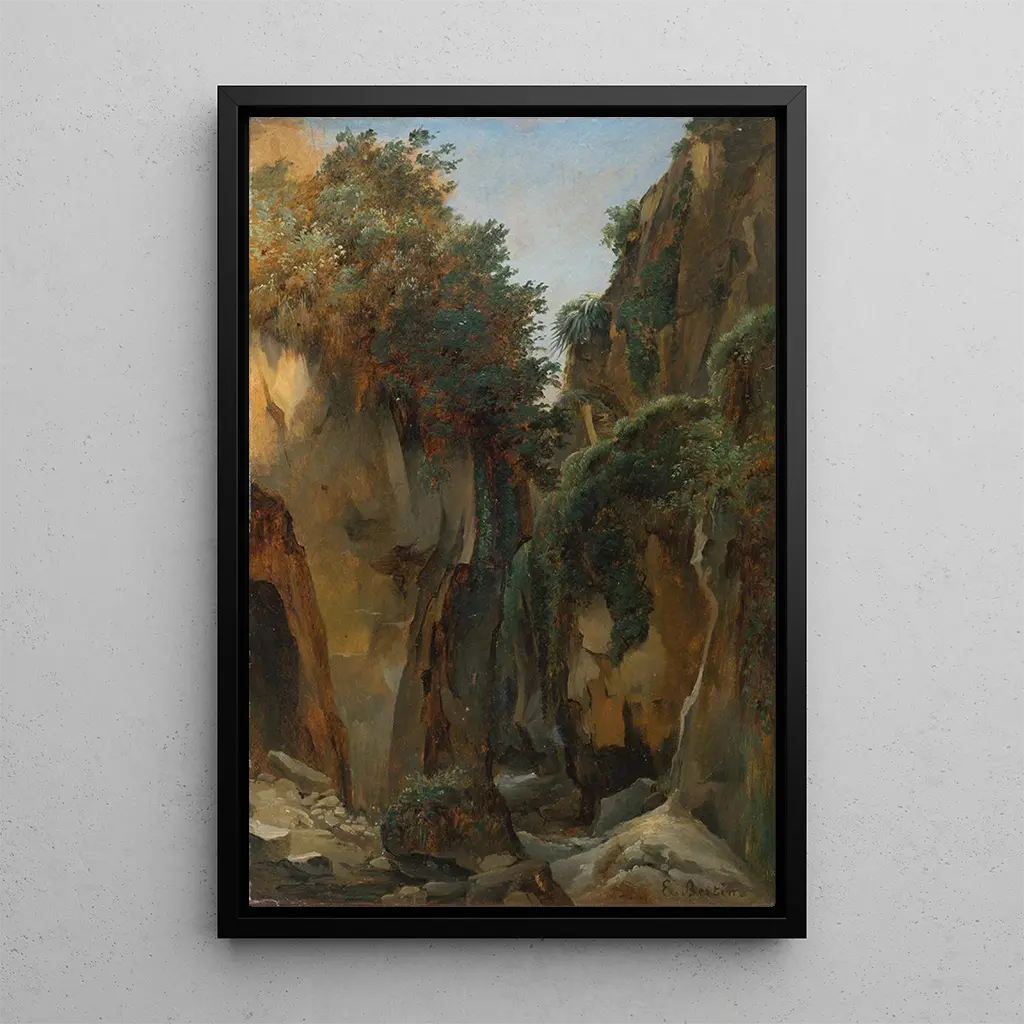 "Ravin i Sorrente" är ett konsttryck som förflyttar betraktaren till hjärtat av den förtrollande landskapet på den italienska kusten. François Édouard Bertin, med sin mästerlighet i nyanser av grönt och blått, lyckas fånga det naturliga ljuset som badar detta ravin. Detaljerna av klippor och växtlighet återges med en precision som framkallar den vilda skönheten i naturen. Den fridfulla atmosfär som utstrålar denna målning inbjuder till eftertanke och erbjuder ett ögonblick av flykt från vardagens tumult. Detta konsttryck är en sann hyllning till den italienska landskapens skönhet, där varje penseldrag tycks andas liv.