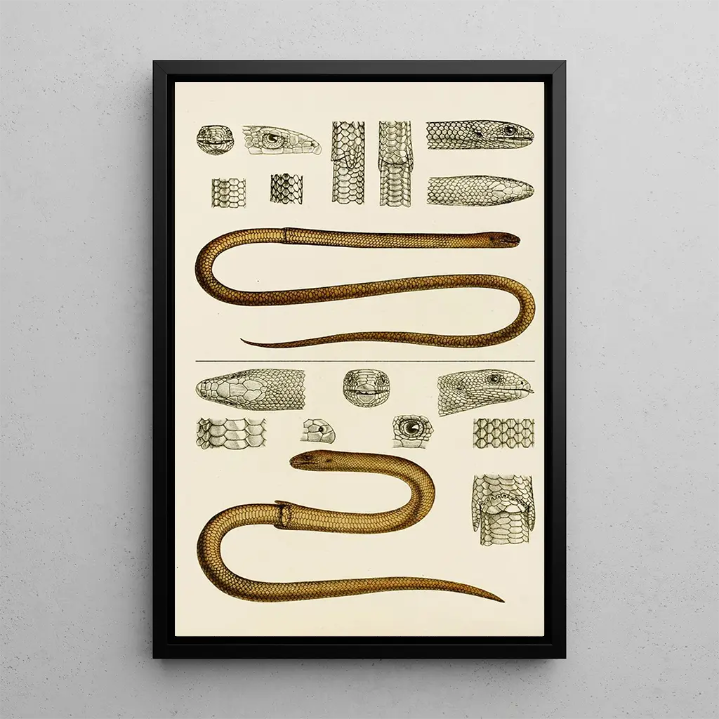 Konsttrycket av Reptiles III är ett dekorativt föremål som kan berika vilket utrymme som helst, vare sig det är ett vardagsrum, ett kontor eller ett sovrum. Dess utskriftskvalitet garanterar livfulla färger och precisa detaljer, och ger en anmärkningsvärt trogen återgivning av originalverket. Genom att integrera detta konsttryck i din inredning tillför du en touch av elegans och lärdom, samtidigt som du väcker samtal om naturen och biodiversitet. Den estetiska dragningskraften hos detta konsttryck ligger i dess förmåga att fånga fantasin, vilket gör detta konsttryck till ett perfekt val för dem som uppskattar konst och vetenskap.