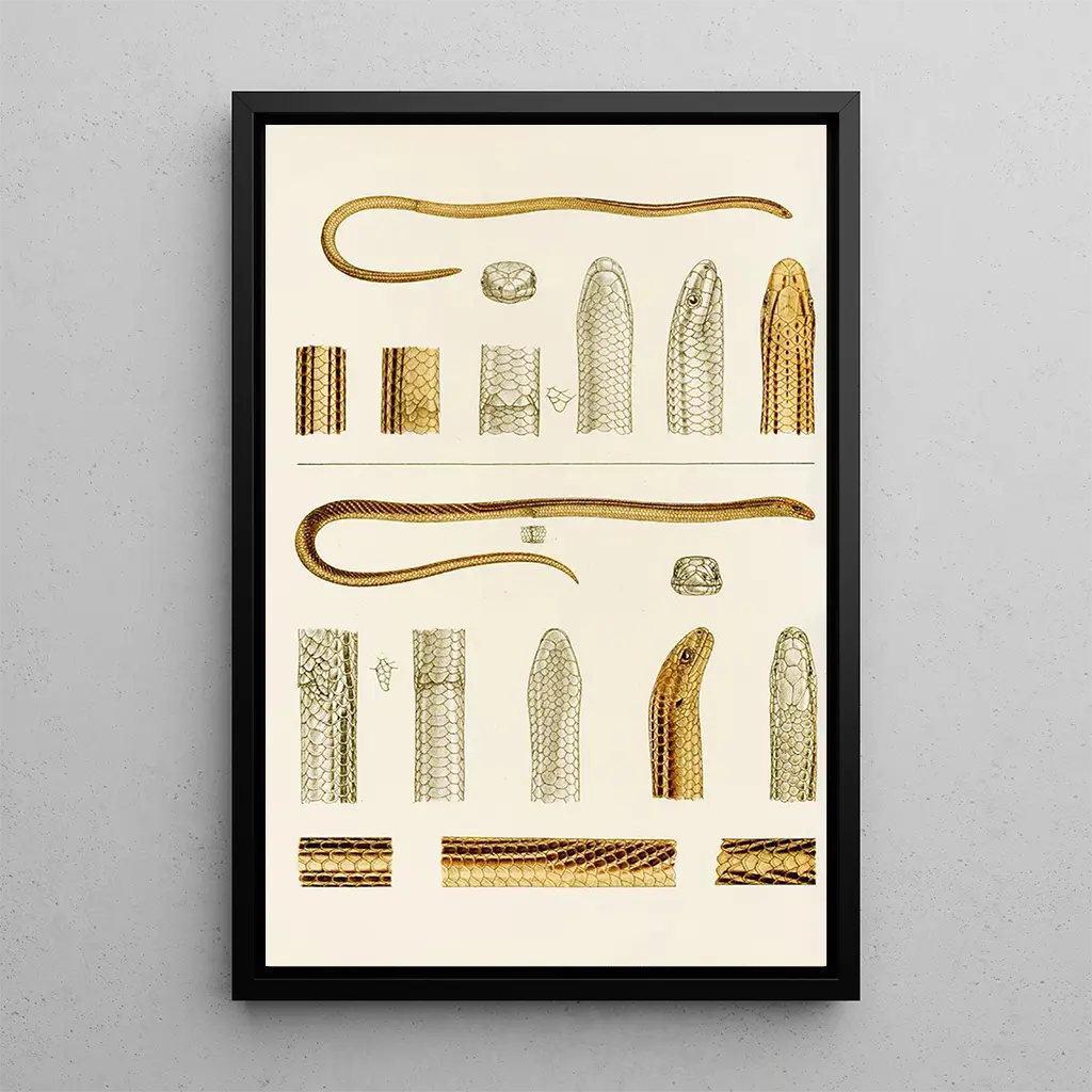 Konsttrycket av Reptiler IV är ett värdefullt tillskott till varje konstsamling, och tillför en touch av natur och elegans till ditt hem. Oavsett om det är i ett vardagsrum, ett kontor eller ett sovrum, drar detta konsttryck till sig blickar och väcker intresse. Dess utskriftskvalitet garanterar trohet mot färger och detaljer i originalverket, vilket ger en berikande visuell upplevelse. Genom att välja detta konsttryck, väljer du en dekoration som kombinerar estetik och utbildning, samtidigt som den hyllar naturens skönhet. Detta konsttryck är ett perfekt val för den som vill försköna sitt utrymme och samtidigt uttrycka sin smak för konst och vetenskap.