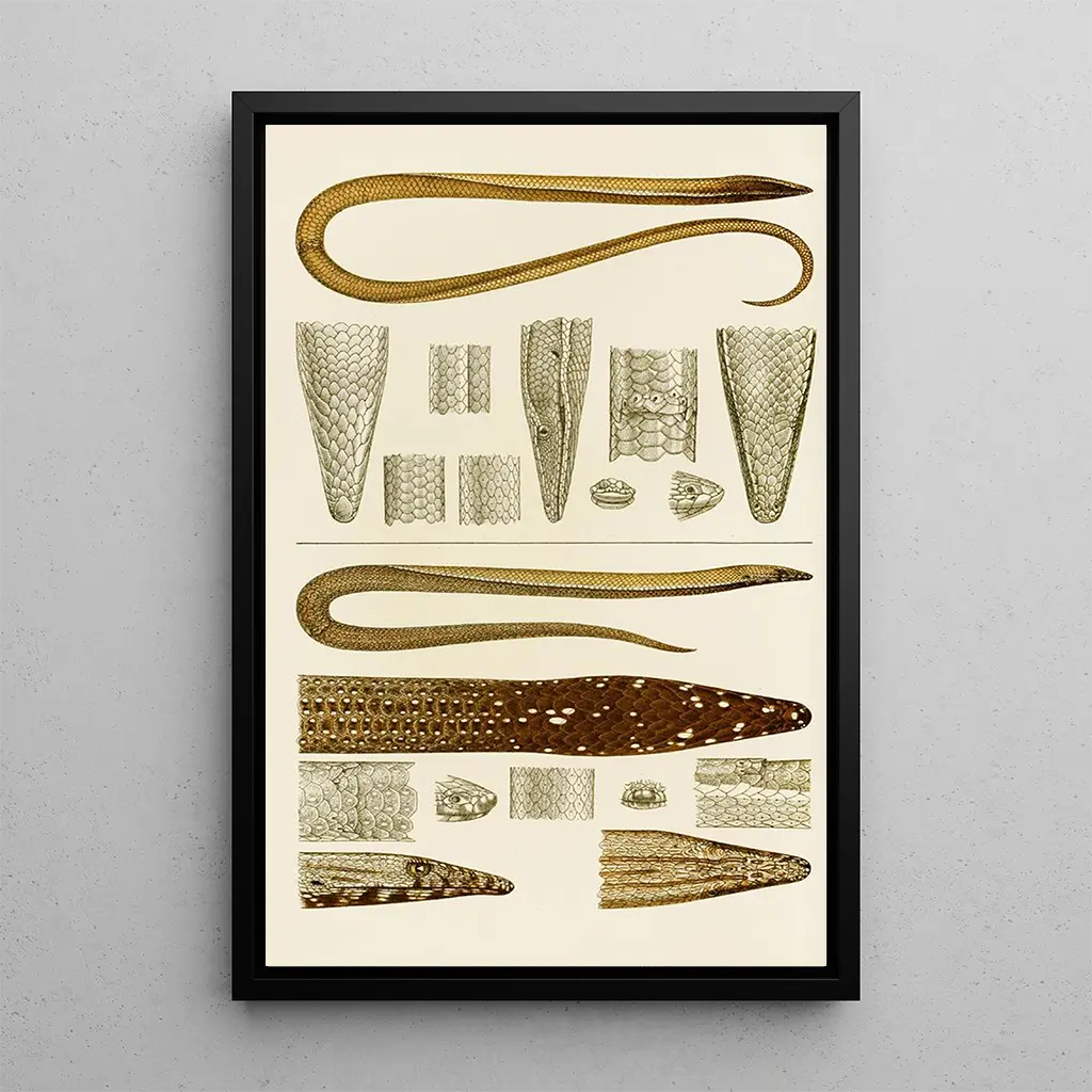 Att välja konsttryck av "Reptiler V" i ditt hem är att välja ett verk som tillför en touch av originalitet och elegans. Oavsett om det är i ett vardagsrum, ett kontor eller ett sovrum, kommer detta konsttryck att fängsla dina gästers uppmärksamhet och väcka spännande samtal. Kvaliteten på konsttrycket garanterar en trohet mot färger och detaljer i originalverket, samtidigt som det erbjuder en obestridlig estetisk attraktion. Genom att integrera denna duk i din inredning tillför du en konstnärlig dimension som hyllar skönheten i djurriket, samtidigt som du berikar atmosfären i ditt boende.