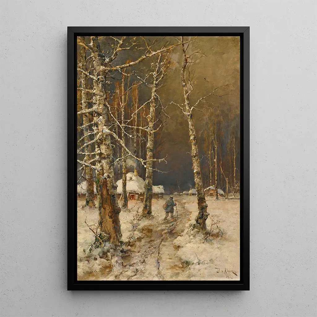 Född 1850 i Ryssland är Julius Sergius Klever erkänd för sina vintriga konsttryck som speglar den vilda skönheten i de nordiska regionerna. Påverkad av de stora mästarna inom landskapsmåleri utvecklar han en unik stil som förenar realism och romantik. Hans verk ligger i skärningspunkten mellan 1800-tal och 1900-tal, en period präglad av en strävan efter naturen och en utforskning av mänskliga känslor inför den. Klever har lyckats fånga essensen av sin tid och erbjuder en poetisk vision av naturen, samtidigt som han är en del av realismen. Hans målningar, såsom "Voyageur dans la neige", vittnar om hans talang att framkalla intima och eftertänksamma atmosfärer.