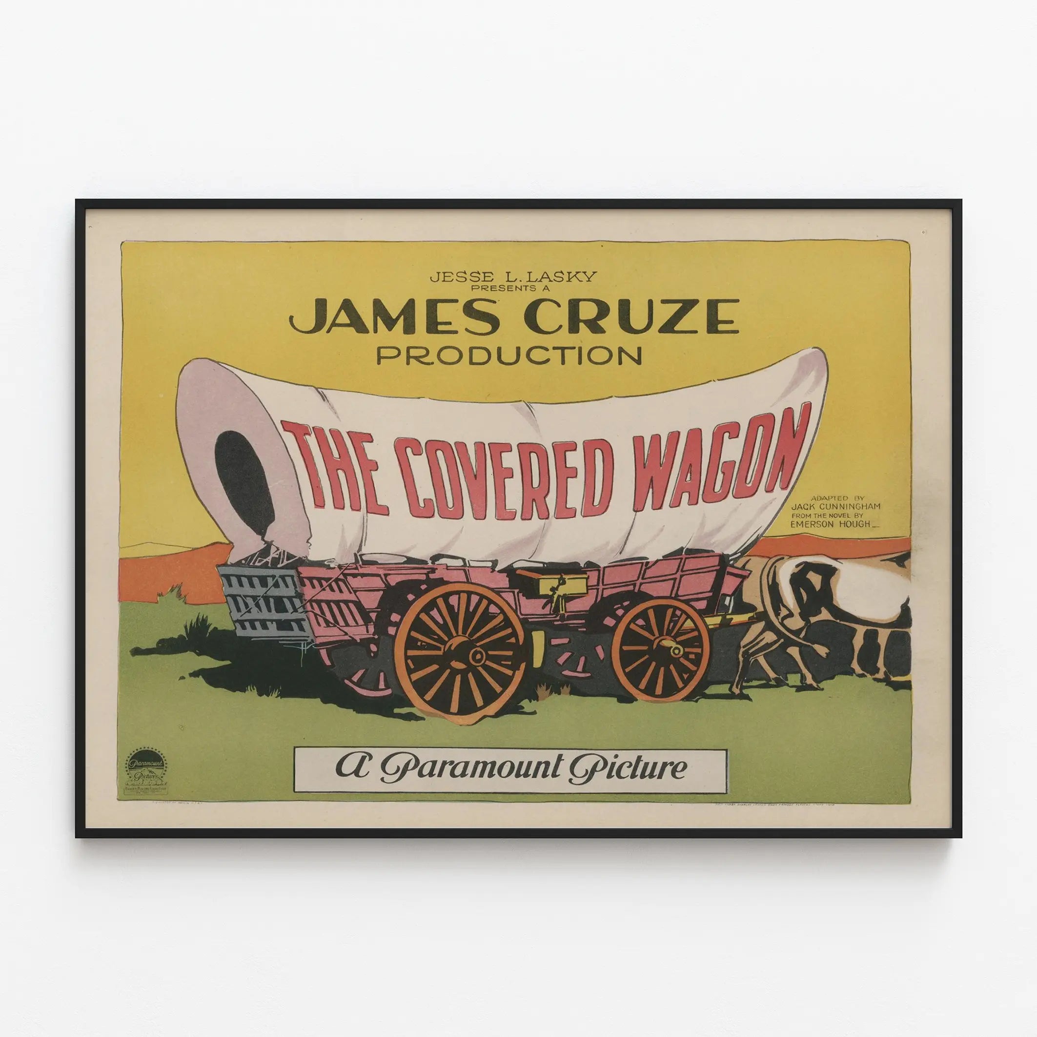 Ge din inredning en touch av äkthet och retrocharm med detta vintageaffisch som illustrerar "The Covered Wagon". Denna väggdekoration är inspirerad av en gammal filmproduktion och visar en typisk täckt vagn från den amerikanska västern. Affischen har en enkel och grafisk design, med varma jordnära färger som gult, grönt och rött som framhäver vagnens traditionella karaktär. De stora synliga trähjulen och den vita presenningen med titeln i röda bokstäver skapar en harmonisk kontrast, perfekt för en vintage- eller västernstämning. Denna väggbild passar utmärkt i vardagsrum, kontor eller fritidsutrymmen där man vill väcka äventyrslust och historisk upptäckarglädje. Som ett äkta väggdekorationselement ger den en kulturell prägel samtidigt som den är tillgänglig och dekorativ. Denna affisch är också en originell idé för filmälskare och retroplakatentusiaster som vill berika sin samling eller dekorera ett rum med detta tema. Dess breda format och noggranna layout ger god synlighet och passar lätt in i olika inredningsstilar. Oavsett om det är för en industriell, vintage eller eklektisk stil, blir denna "The Covered Wagon" affisch ett framstående tillskott som berättar en historia genom sin enkla och suggestiva illustration. Välj detta väggdekorationselement för en stark visuell effekt och en hyllning till filmarvet och den gamla amerikanska västern.