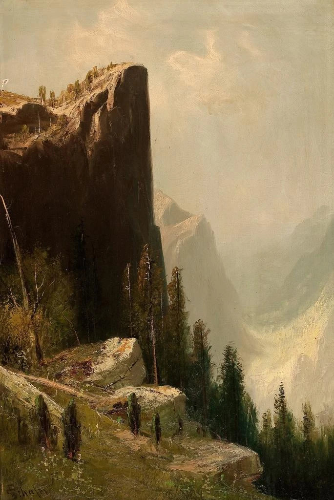 Frederick Ferdinand Schafer, actif au XIXe siècle, est un peintre dont l'œuvre s'inscrit dans le mouvement paysagiste américain. Influencé par les grands maîtres de la peinture de paysage, il a su capturer l'essence des paysages américains avec une sensibilité unique. Son travail reflète l'importance de la nature dans la culture américaine de l'époque, alors que le pays s'ouvrait à l'exploration et à l'appréciation de ses vastes territoires. Schafer a souvent peint des scènes inspirées par ses voyages, et "Rocher de guet dans la vallée de Yosemite" est un parfait exemple de son engagement à représenter la beauté naturelle des États-Unis.