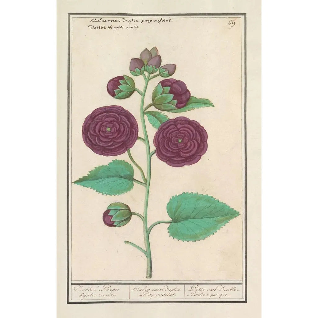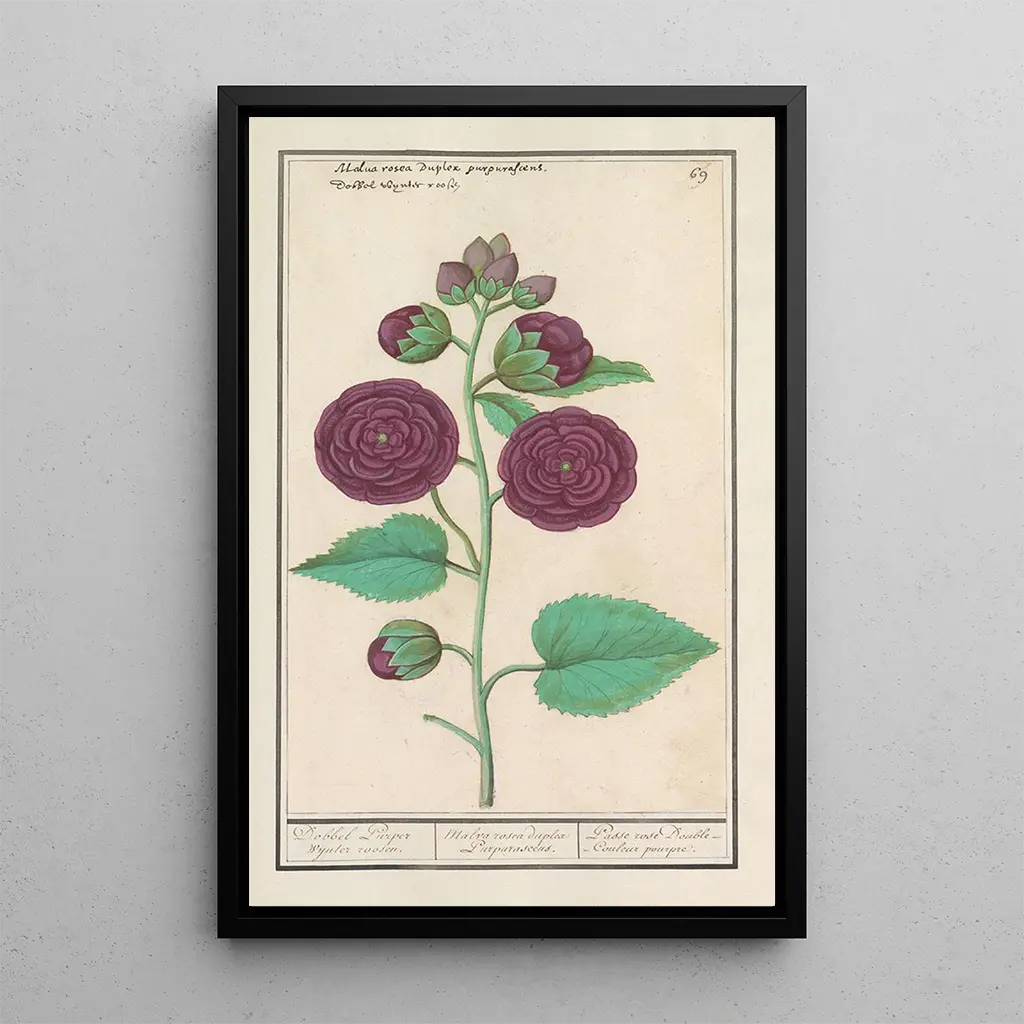 Anselmus Botius de Boodt, verksam på 1600-talet, är erkänd för sina bidrag till botanisk konst. Som utbildad botanist lyckades han kombinera vetenskaplig noggrannhet med konstnärlig känsla, och skapade verk som dokumenterar floran samtidigt som de hyllar dess skönhet. Hans noggranna metod och observation av detaljer gör honom till en pionjär inom växtskildring. Rose trémière, ofta återgiven i hans verk, visar hans talang för att fånga själva essensen av blommorna och integrera dem i en rik och uttrycksfull konstnärlig kontext.
