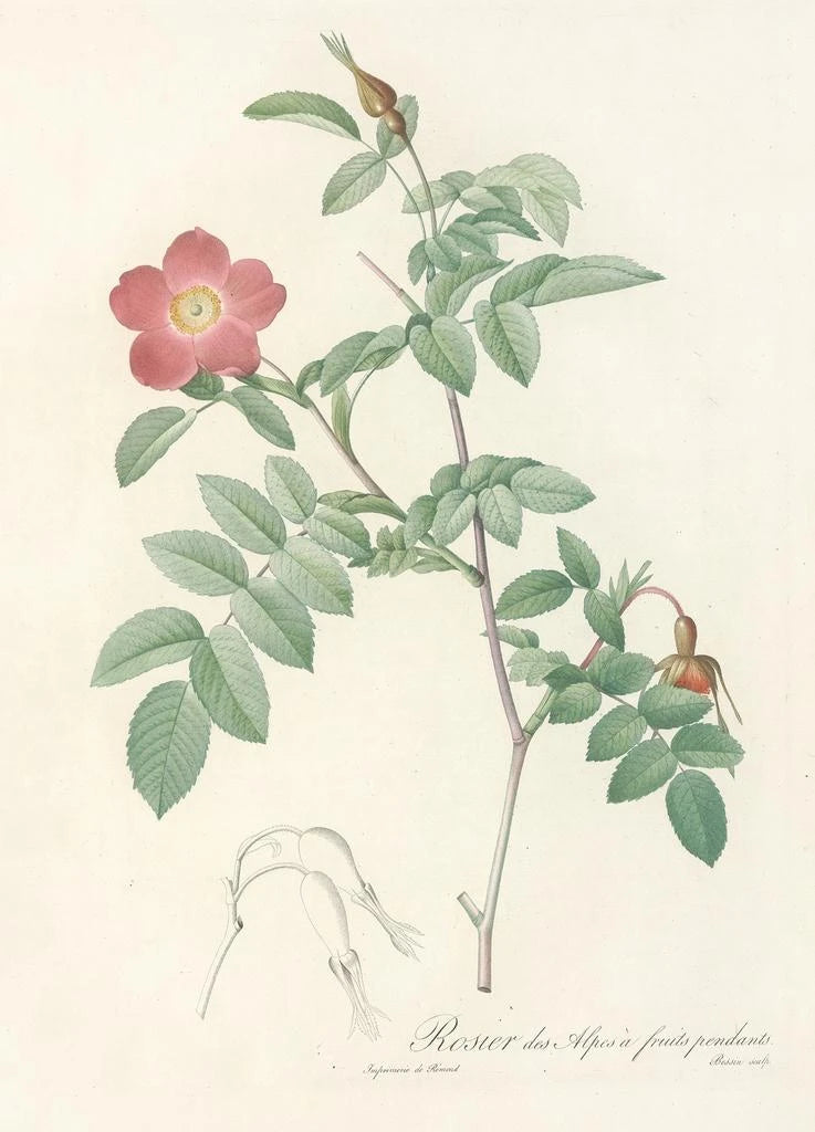 Målning Rosa Alpina Pendulina - Pierre Joseph Redouté | Konsttryck