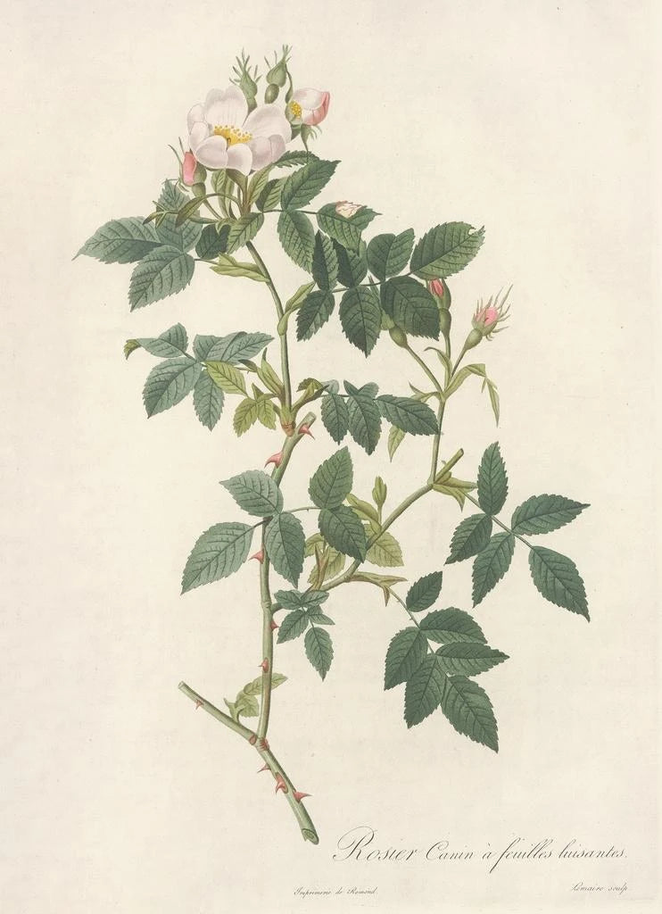 Pierre Joseph Redouté, född 1759, är erkänd som en av de största blomstermålarna under sin tid. Hans konstverk, Rosa Canina Nitens, ingår i en botanisk tradition där konst och vetenskap möts. Han arbetade huvudsakligen för det franska hovet och lyckades kombinera vetenskaplig precision med konstnärlig känsla. Hans stil, influerad av neoklassicism, har omdefinierat framställningen av blommor inom konsten. Redouté har lämnat ett varaktigt arv, vilket gör hans konsttryck till oumbärliga referenser för botanikkonstälskare och konstentusiaster.