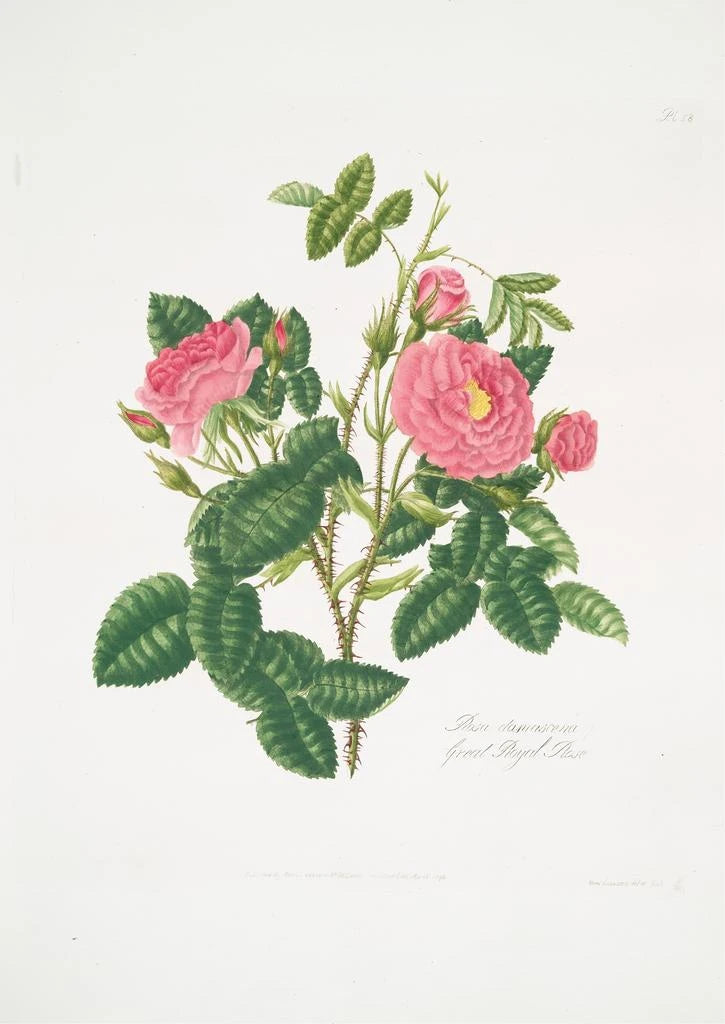 Konsttrycket av Rosa damascena, skapad av Mary Lawrance, återspeglar den tidlösa skönheten hos denna ikoniska ros. Med sina delikata kronblad och nyanser av mjuk rosa förflyttar detta konsttryck betraktaren till en frodig trädgård, där varje detalj tycks vibrera under ljuset. Lawrances teknik, som kombinerar finhet och precision, ger liv åt denna blomma och skapar en atmosfär av mildhet och romantik. Verket inbjuder till en lugn reflektion, där naturen avslöjar sin fulla prakt.