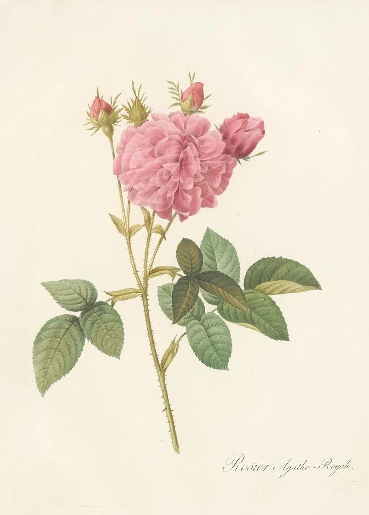Målning Rosa Gallica Agatha Var Regalis - Pierre Joseph Redouté | Konsttryck