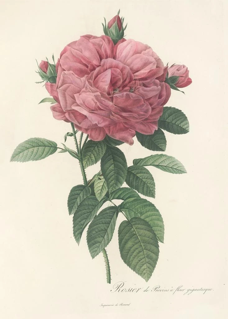 Målning Rosa Gallica Flore giganteo - Pierre Joseph Redouté | Konsttryck