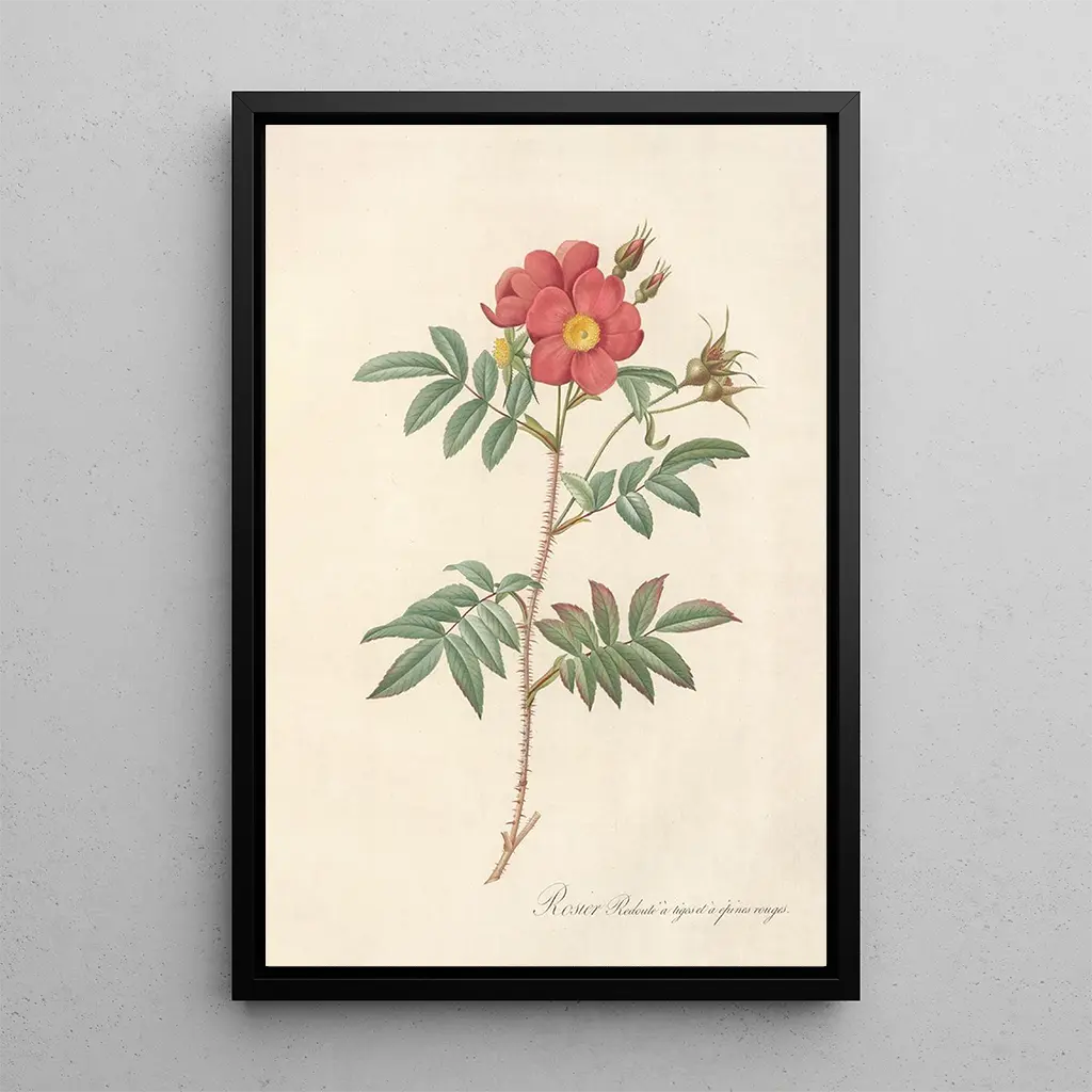 Konsttrycket av Rosa Redutea Rubescens är ett dekorativt val som tillför en touch av charm och sofistikering till ditt utrymme. Oavsett om det är i ett vardagsrum, ett sovrum eller ett kontor, utmärker sig detta konsttryck genom sin utskriftskvalitet och trohet mot det ursprungliga verket. Dess glans och skönhet gör det till ett centralt dekorativt element, som kan förvandla ett rum till en välkomnande och inspirerande plats. Genom att integrera detta konsttryck i din inredning hyllar du inte bara rosornas skönhet, utan också Pierre Joseph Redoutés konstnärliga arv.