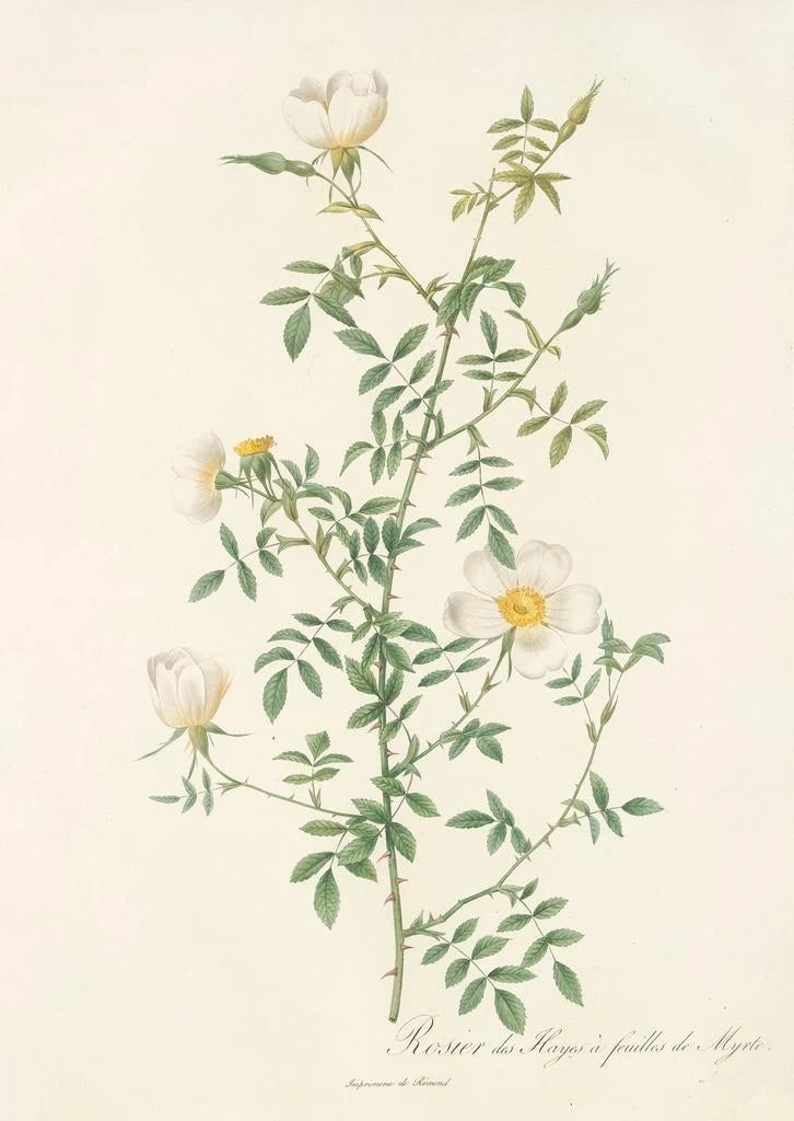 Målning Rosa Sepium Myrti Folia - Pierre Joseph Redouté | Konsttryck