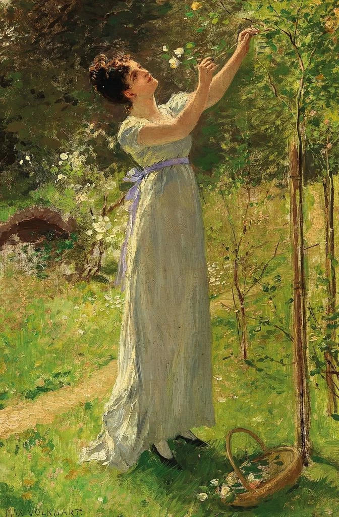 Né en 1851, Max Volkhart s'est imposé comme un maître dans la représentation florale, notamment grâce à son approche innovante et sensible. Influencé par le mouvement impressionniste, il a su capturer la lumière et la couleur d'une manière qui évoque la beauté fugace de la nature. Son travail a été largement reconnu, et il a participé à de nombreuses expositions, où ses œuvres ont été saluées pour leur finesse et leur expressivité. Volkhart a su marquer son époque en transformant des scènes de la vie quotidienne en véritables œuvres d'art, célébrant la beauté du monde naturel.
