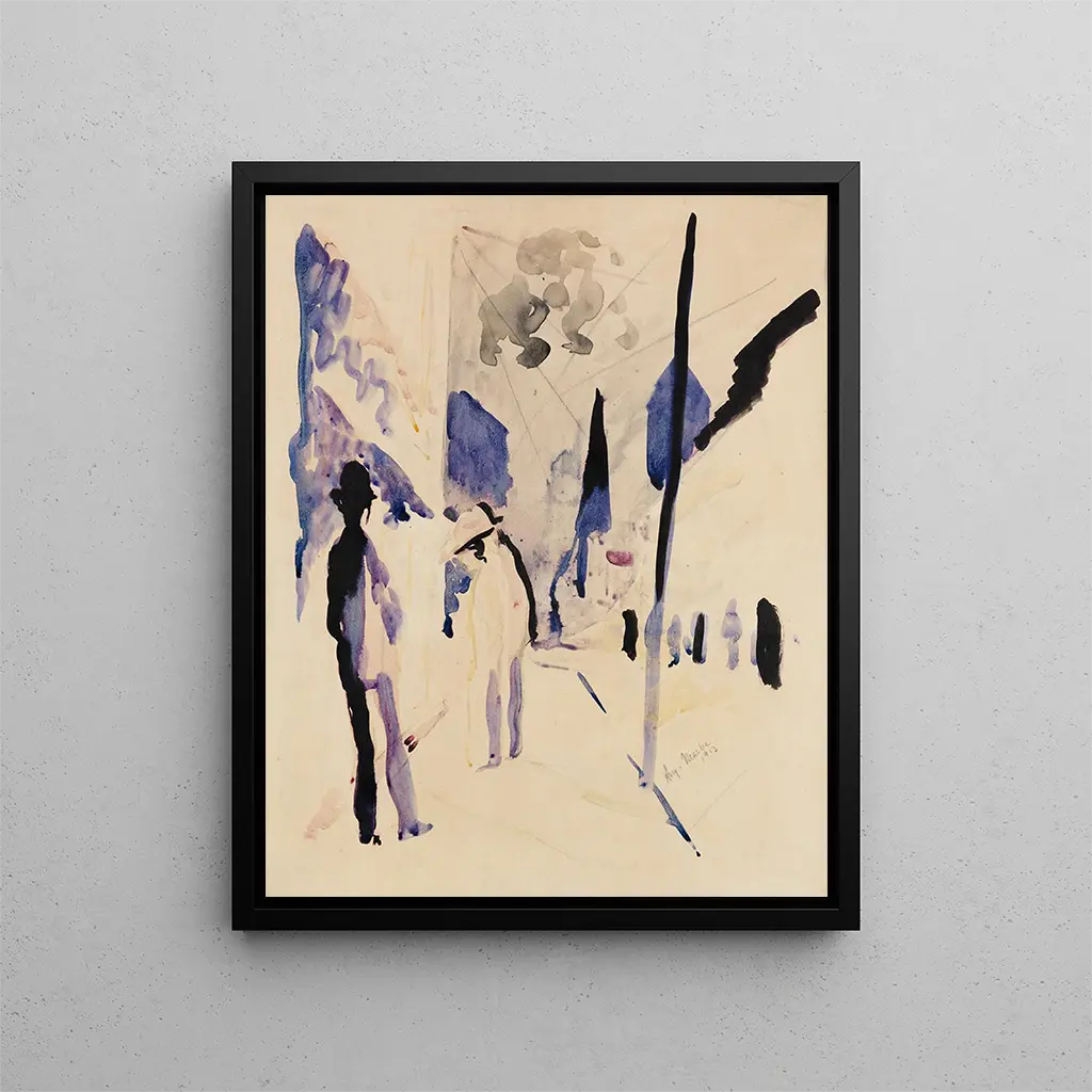 August Macke, en ikonisk figur i början av 1900-talet, lyckades präga sin tid med sin innovativa metod och sin konstnärliga känslighet. Som medlem i expressionistgruppen "Die Brücke" utforskade han teman som modernitet, natur och mänsklighet genom en palett av livfulla färger och djärva former. Hans inflytande sträcker sig långt bortom hans eget arbete, och inspirerar många samtida och framtida konstnärer. Macke lyckades fånga sin tids anda, och översätta känslor och sensationer till ett tillgängligt och rörande konstverk. "Rue am Abend" är ett perfekt exempel på denna förmåga att framkalla djupa känslor genom enkla bilder, vilket gör denna konstnär till en oumbärlig figur i modern konsthistoria.