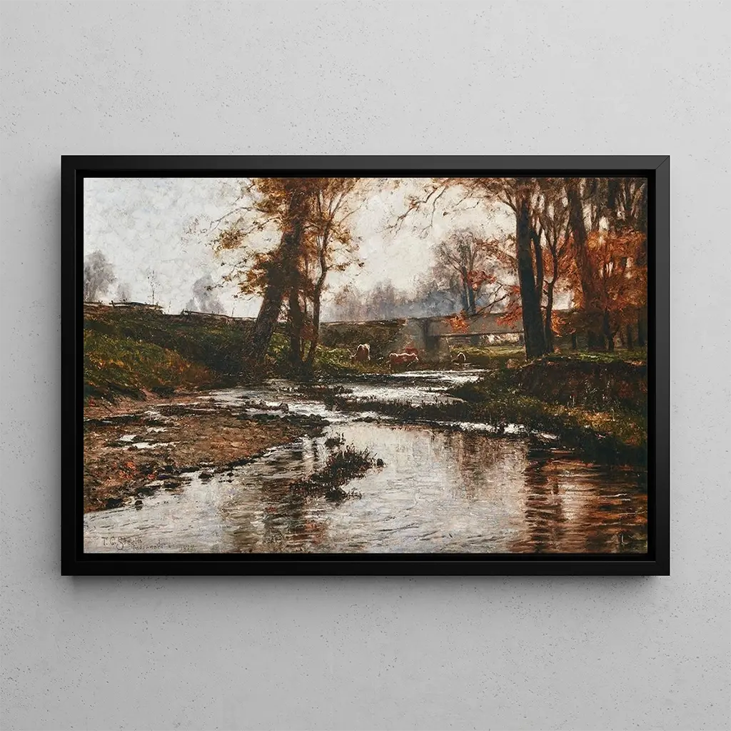 Ruisseau agréable : une évasion bucolique au cœur de la nature Dans "Ruisseau agréable", Theodore Clement Steele nous transporte dans un paysage serein où la nature s'exprime avec éclat. Les couleurs vives et les nuances délicates de vert et de bleu se mêlent harmonieusement, évoquant la fraîcheur d'un matin printanier. La technique impressionniste de Steele, avec ses coups de pinceau fluides, crée une atmosphère de tranquillité, invitant le spectateur à s'immerger dans ce tableau. La lumière joue un rôle essentiel, illuminant le ruisseau et les feuillages environnants, tandis que le mouvement de l'eau apporte une dynamique apaisante à l'ensemble. Theodore Clement Steele : un maître de l'impressionnisme américain Theodore Clement Steele, figure emblématique de l'impressionnisme américain, a su capturer la beauté des paysages de l'Indiana et au-delà. Né en 1847, il a été influencé par les grands maîtres européens, mais a développé un style unique qui reflète son amour pour la nature. Steele a été un membre actif du groupe d'artistes de l'Indiana, contribuant à l'émergence d'une identité artistique régionale. Son œuvre, marquée par une palette vibrante et une sensibilité à la lumière, a joué un rôle crucial dans l'évolution de l'art paysager américain au tournant du XXe siècle. Une acquisition décorative aux multiples atouts La reproduction de "Ruisseau agréable" est une pièce décorative idéale pour tout espace, que ce soit un salon, un bureau ou une chambre. Sa qualité d'impression garantit une fidélité aux couleurs et aux détails de l'œuvre originale, apportant une touche de nature et de sérénité à votre intérieur. Ce tableau invite à la contemplation, créant une atmosphère apaisante et inspirante. Avec son attrait esthétique indéniable, il s'intègre parfaitement dans divers styles de décoration, du classique au contemporain, enrichissant ainsi votre environnement de vie.