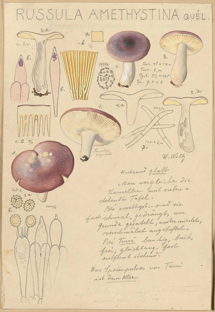 Konsttrycket av Russula amethystina utgör ett perfekt dekorativt föremål för att berika ditt hem, oavsett om det är i ett vardagsrum, ett kontor eller ett sovrum. Dess utskriftskvalitet och trohet mot de ursprungliga färgerna garanterar ett slående estetiskt intryck, som kan höja atmosfären i vilket utrymme som helst. Genom att integrera detta konsttryck i din inredning tillför du en touch av elegans och natur, samtidigt som du väcker samtal om konst och biodiversitet. Denna målning, både konstnärlig och dekorativ, kommer att tilltala konstälskare och naturentusiaster, vilket gör den till ett klokt val för varje samling.