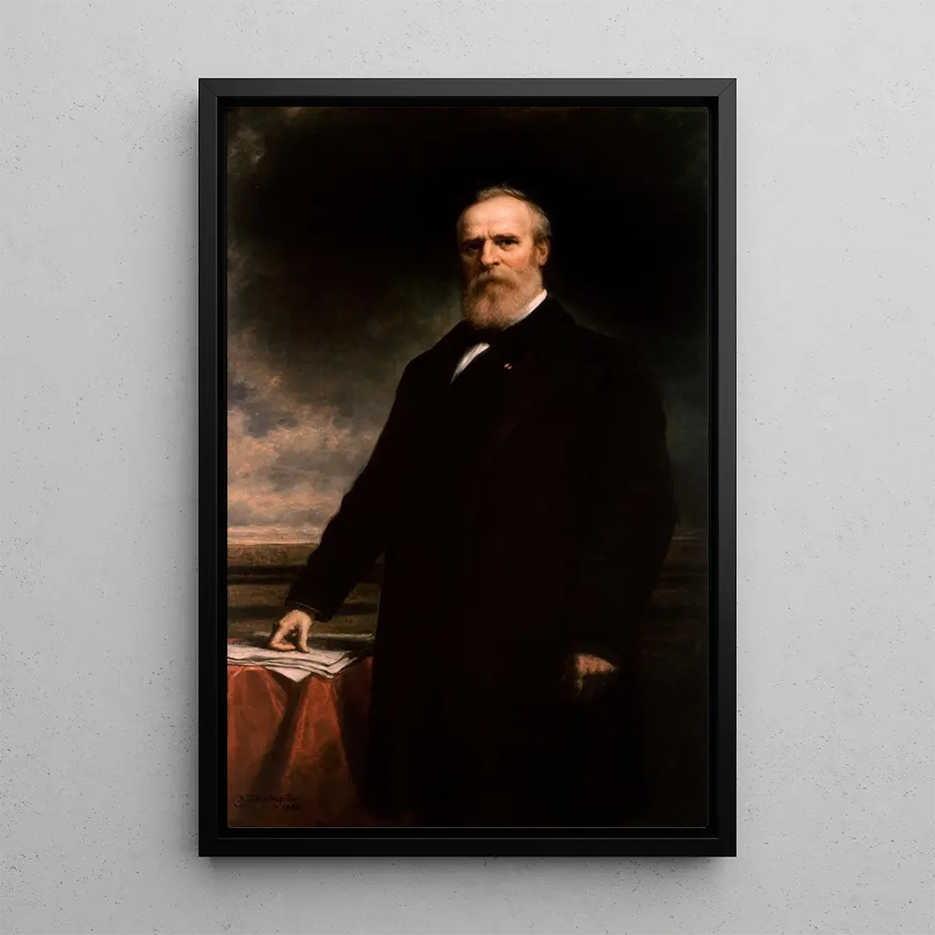 Den konsttryck av Rutherford Birchard Hayes, utförd av Daniel Huntington, skildrar en man med ett bestämt uttryck, symbol för en era präglad av återuppbyggnad och förändring. De mjuka nyanserna och de delikata skuggorna framhäver Hayes värdighet, medan Huntington-tekniken lyfter fram detaljer i hans kostym och ansikte. Atmosfären som avtecknar sig i detta konsttryck är både allvarlig och inspirerande, inbjuder betraktaren att reflektera över de utmaningar Hayes stod inför under sin presidentperiod. Varje penseldrag verkar berätta en historia, den om en ledare engagerad i strävan efter ett enat nation.