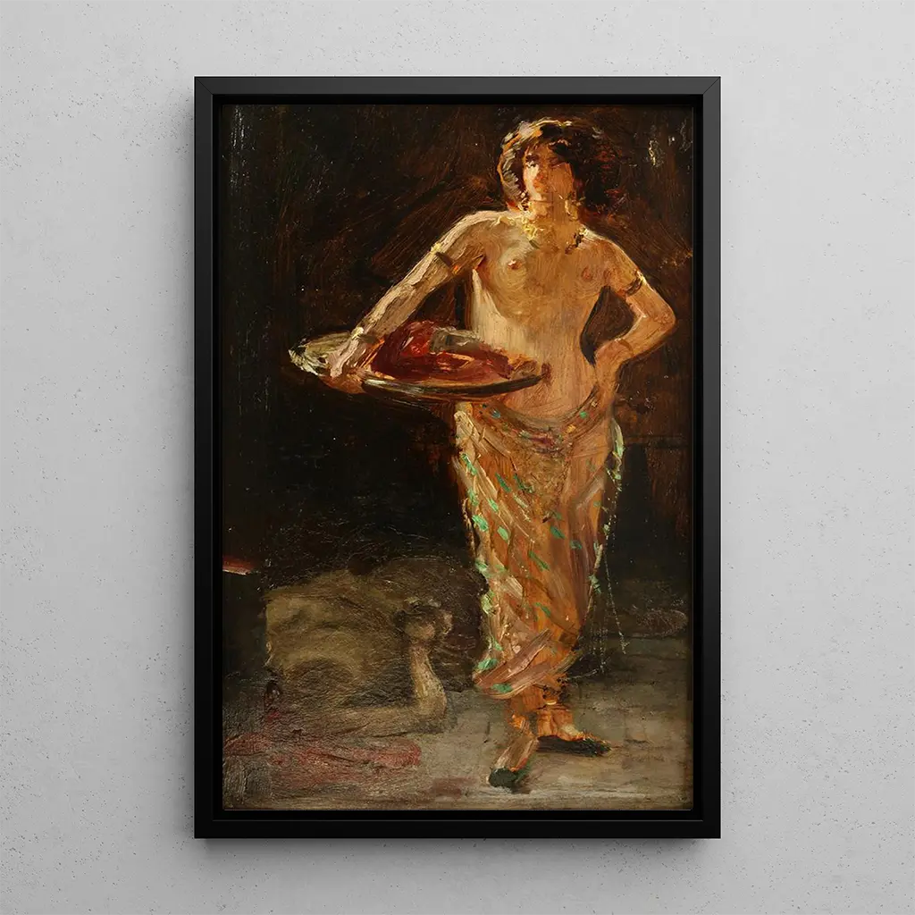 Konsttrycket av Salomé är ett mästerverk som kommer att förhöja ditt hem, oavsett om det är ett vardagsrum, ett kontor eller ett sovrum. Med sin exceptionella tryckkvalitet garanterar denna duk en perfekt trohet mot färger och detaljer i det ursprungliga verket. Dess estetiska tilltal och dess suggestiva karaktär gör det till ett perfekt val för dem som vill tillföra en touch av sofistikering och mystik till sin inredning. Genom att välja detta konsttryck investerar du i ett verk som garanterat kommer att dra blickar till sig och väcka samtal.