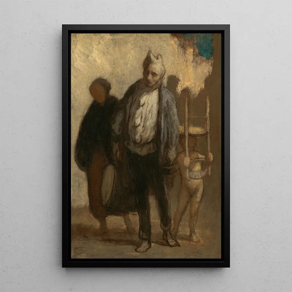 Honoré Daumier, född 1808, är en ikonisk konstnär från 1800-talet, känd för sitt sociala och politiska engagemang. Påverkad av realism skildrar han sin tids seder med en anmärkningsvärt skarp blick. Hans verk, ofta kritiska, speglar kampen för de arbetande klasserna och sociala orättvisor. Daumier lyckades göra sig bemärkt inom konstvärlden tack vare sin förmåga att kombinera humor och satir, samtidigt som han behöll en djup humanitet i sina skildringar. Konstverket "Saltimbanques errants" passar perfekt in i detta sammanhang och illustrerar gatkonstnärers liv med en unik känslighet.