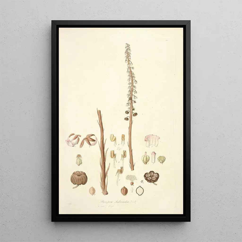 Konsttrycket av verket "Collectanea botanica Pl05" fördjupar oss i en värld där naturen blomstrar under John Lindleys penseldrag. Denna målning utmärker sig genom sin palett av livfulla och harmoniska färger, där de strålande gröna nyanserna möter inslag av gult och rosa, vilket återspeglar den rika växtligheten. Kompositionen, noggrant sammansatt, framhäver botaniska exemplar med vetenskaplig precision, samtidigt som den behåller en visuell poesi. Atmosfären som avtecknar sig från detta verk inbjuder till förundran och eftertanke, och hyllar skönheten och komplexiteten i den växtbaserade världen.
