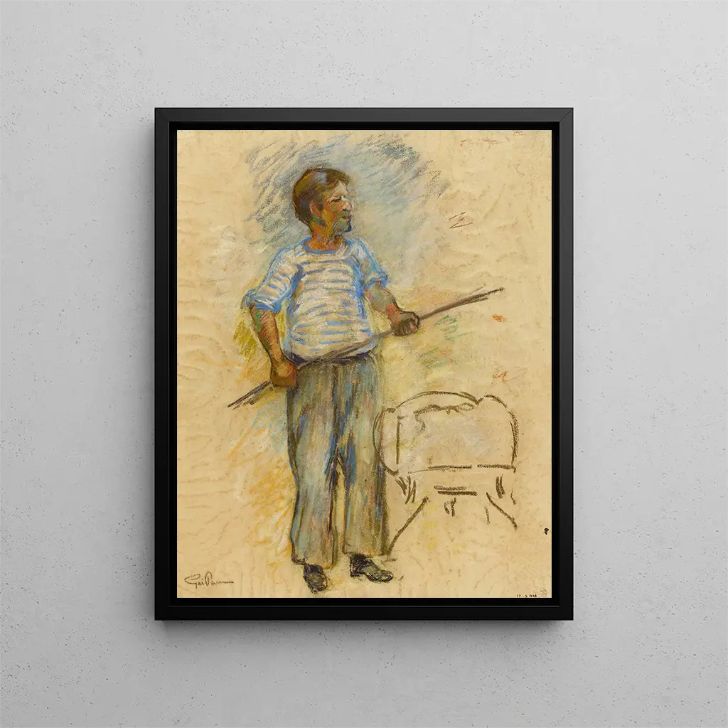 Reproduktion Cribleur de sable - Armand Guillaumin – Introduktion fängslande I den fascinerande världen av impressionistisk konst utmärker sig verket "Cribleur de sable" av Armand Guillaumin genom sitt strålande ljus och sin delikata komposition. Denna målning, som fångar ett flyktigt ögonblick av vardagslivet, inbjuder betraktaren att fördjupa sig i en värld där natur och människa samexisterar i harmoni. Guillaumin, ofta mindre känd än sina samtida, lyckas förmedla en påtaglig känsla genom sina vibrerande penseldrag. Scenen som skildras, både enkel och suggestiv, för oss till soliga stränder där landskapets skönhet blandas med mänsklig aktivitet. Konsttrycket av detta verk är inte bara en enkel imitation, det erbjuder ett fönster till konstnärens själ och hans tid. Stil och unikhet i verket Armand Guillaumins stil kännetecknas av ett djärvt förhållningssätt till färger och former. I "Cribleur de sable" använder konstnären varma och ljusa nyanser som framkallar solens värme och texturen av naturliga element. Nyanser av gult, orange och blått överlappar varandra för att skapa en vibrerande atmosfär, nästan kännbart. Impressionisttekniken, präglad av synliga penseldrag och ett särskilt fokus på ljuset, utförs med bravur. Varje detalj, från den koncentrerade sandkastaren till den suddiga bakgrunden av kullarna, vittnar om en teknisk skicklighet och en konstnärlig känslighet som gör verket unikt. Kompositionen, både balanserad och dynamisk, guidar betraktarens blick genom målningen och inbjuder till att utforska varje hörn av denna livfulla scen. Konstnären och hans inflytande Armand Guillaumin, född 1841, är en av de ikoniska figurerna inom impressionismrörelsen. Även om han var mindre erkänd än konstnärer som Monet eller Renoir, har hans arbete haft ett betydande inflytande på samtida och framtida generationer. Guillaumin lyckades fånga essensen av franska landskap med en särskild känslighet, och lyfte fram skönheten i landsbygdsscener och vardagsögonblick. Hans vänskap med konstnärer som Vincent van Gogh och Camille Pissarro bidrog till att forma hans stil,