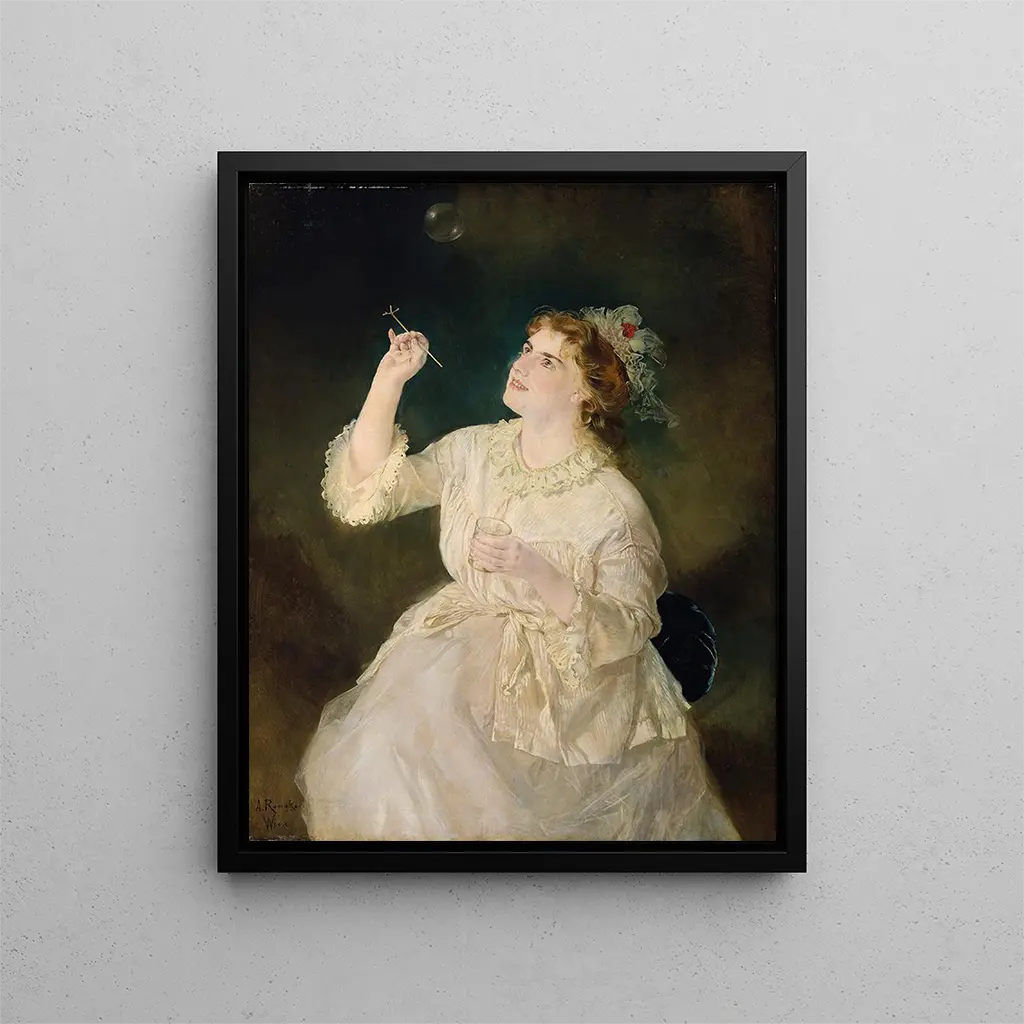 I världen av konst, lyckas vissa verk fånga livets essens med sådan intensitet att de överskrider den enkla ramen för duken. "Lekaren med såpbubblor" av Anton Romako är ett av dessa verk som, genom sin lätthet och poesi, bjuder in betraktaren till en sensorisk resa. Detta konsttryck, skapat i slutet av 1800-talet, framkallar en vardagsscen fylld av magi, där en ung pojke, koncentrerad och förundrad, ägnar sig åt konsten att skapa flyktiga bubblor. Varje bubbla, som svävar i luften, blir en metafor för barndomen, oskulden och tidens gång. Konstnären lyckas fånga detta flyktiga ögonblick med sådan precision att man nästan kan höra den lätta andningen från den unga lekaren. Stil och unikhet i konsttrycket Anton Romakos måleriteknik utmärker sig genom sin subtila användning av ljus och färger, som ger scenen en atmosfär som är både mjuk och livfull. Pastellnyanser, blandade med mer livfulla inslag, skapar en harmonisk kontrast som drar till sig blicken och behåller betraktarens fokus. Kompositionen är noggrant orkestrerad, med en suddig bakgrund som framhäver protagonisten samtidigt som den antyder en rik och levande yttre värld. Detta stilval förstärker idén att skönheten finns i de enkla detaljerna i vardagen. Hur Romako får bubblornas rörelse att nästan dansa under ljuset är en teknisk bedrift som vittnar om hans skicklighet att fånga inte bara bilden, utan även den känsla som avges. Konstnären och hans inflytande Anton Romako, österrikisk målare av ungerskt ursprung, är ofta erkänd för sin förmåga att förena realism med en touch av impressionism. Utbildad vid de mest prestigefyllda konstakademierna under sin tid, utvecklade han en egen stil, fylld av känslighet och djup. Hans verk präglas av en utforskning av teman som barndom och vardagsliv, ofta laddade med en påtaglig nostalgi. Romako har påverkat många konstnärer av sin tid, och hans syn på världen fortsätter att inspirera.