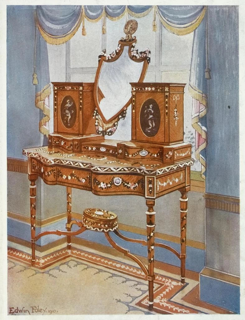 Konsttryck | Satinträskåp i trä med medaljonger - Edwin Foley