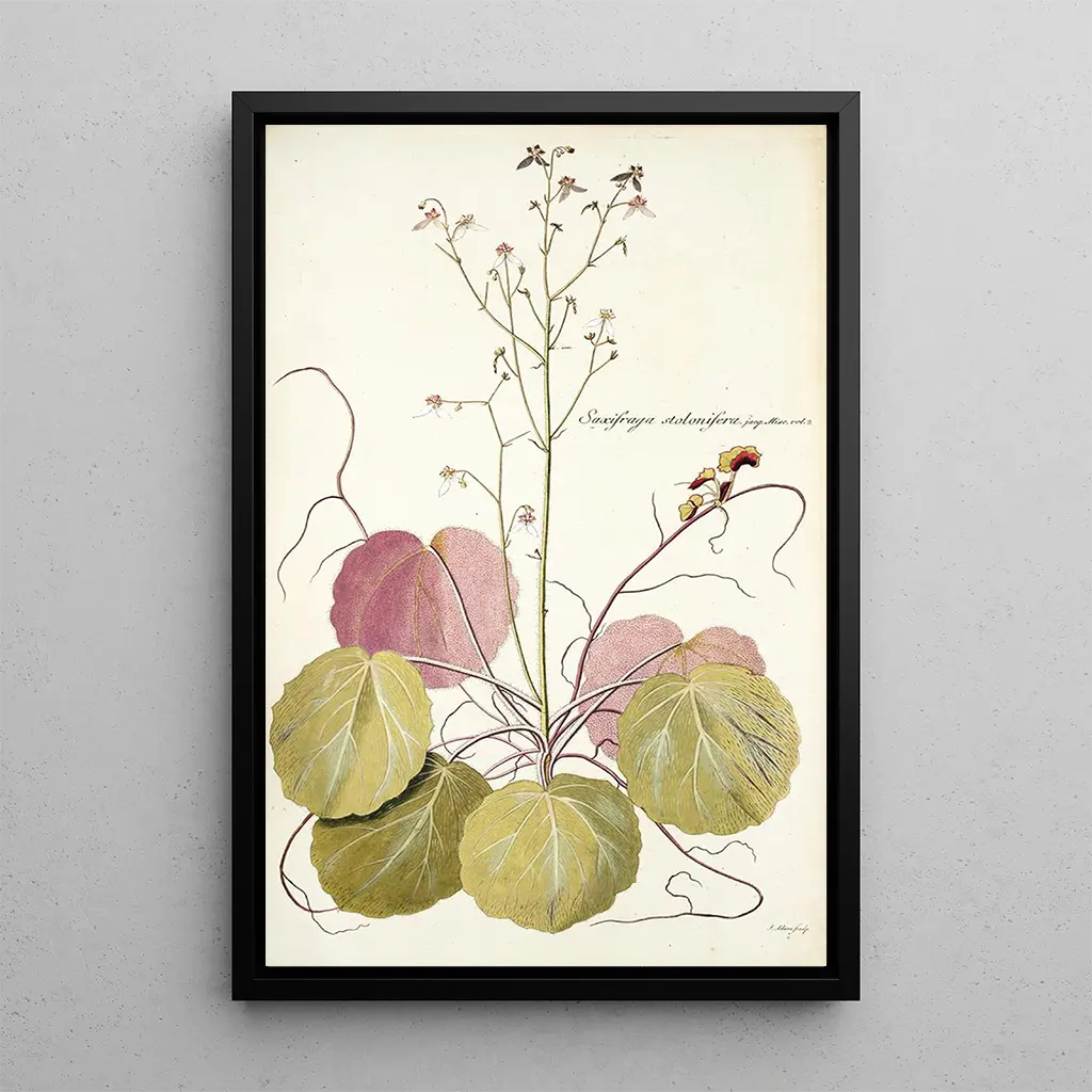 Konsttrycket av Saxifraga stolonifera är ett perfekt dekorativt val för olika utrymmen som vardagsrummet, kontoret eller sovrummet. Dess utskriftskvalitet och färgåtergivning gör det till ett tilltalande konstverk som kommer att fånga blickar. Genom att integrera detta konsttryck i ditt hem tillför du en touch av natur och lugn, samtidigt som du berikar din inredning med ett konstverk som berättar en historia. Dess estetiska tilltal och diskreta elegans gör det till en tidlös dekorationsdetalj som kan harmonisera med olika inredningsstilar.