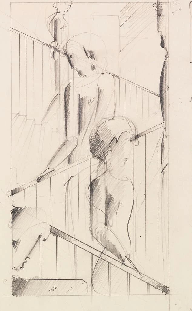 Målning Scène d'escalier - Oskar Schlemmer | Konsttryck
