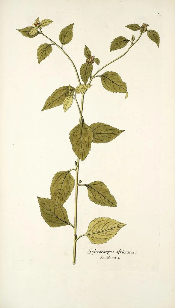 Nikolaus Joseph Freiherr von Jacquin, en framstående figur från 1700-talet, lyckades förena sin kärlek till konst med sin passion för botanik. Hans studier i Wien och hans resor runt om i världen berikade hans verk, vilket möjliggjorde för honom att fånga den växtliga mångfalden. Med Sclerocarpus africanus illustrerar Jacquin inte bara en växt, utan också vikten av bevarande och studiet av arter. Hans arbete har haft en varaktig inverkan på botanik och vetenskaplig illustration, och inspirerat generationer av konstnärer och forskare.