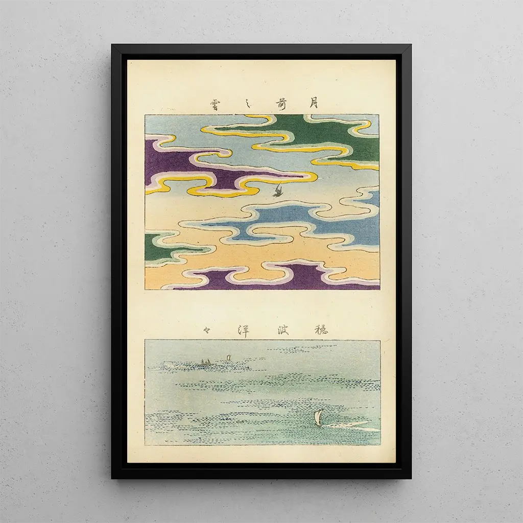 Konsttrycket av Shin zuan Pl 2 framkallar en lugn atmosfär, där nyanser av blått och grönt flätas samman för att skapa en scen fylld av frid. Tekniken för ukiyo-e, typisk för japansk konst, framträder i de noggranna detaljerna och de delikata texturerna. Varje element i kompositionen verkar berätta en historia, inbjudande betraktaren att fördjupa sig i en värld av eftertanke. De organiska formerna och de blomsterinspirerade mönstren, karakteristiska för detta verk, ger en känsla av rörelse och liv, samtidigt som de behåller en tidlös elegans.