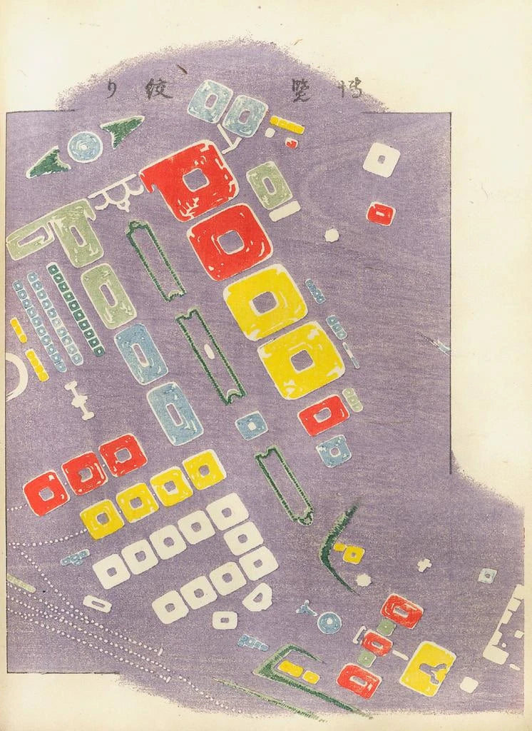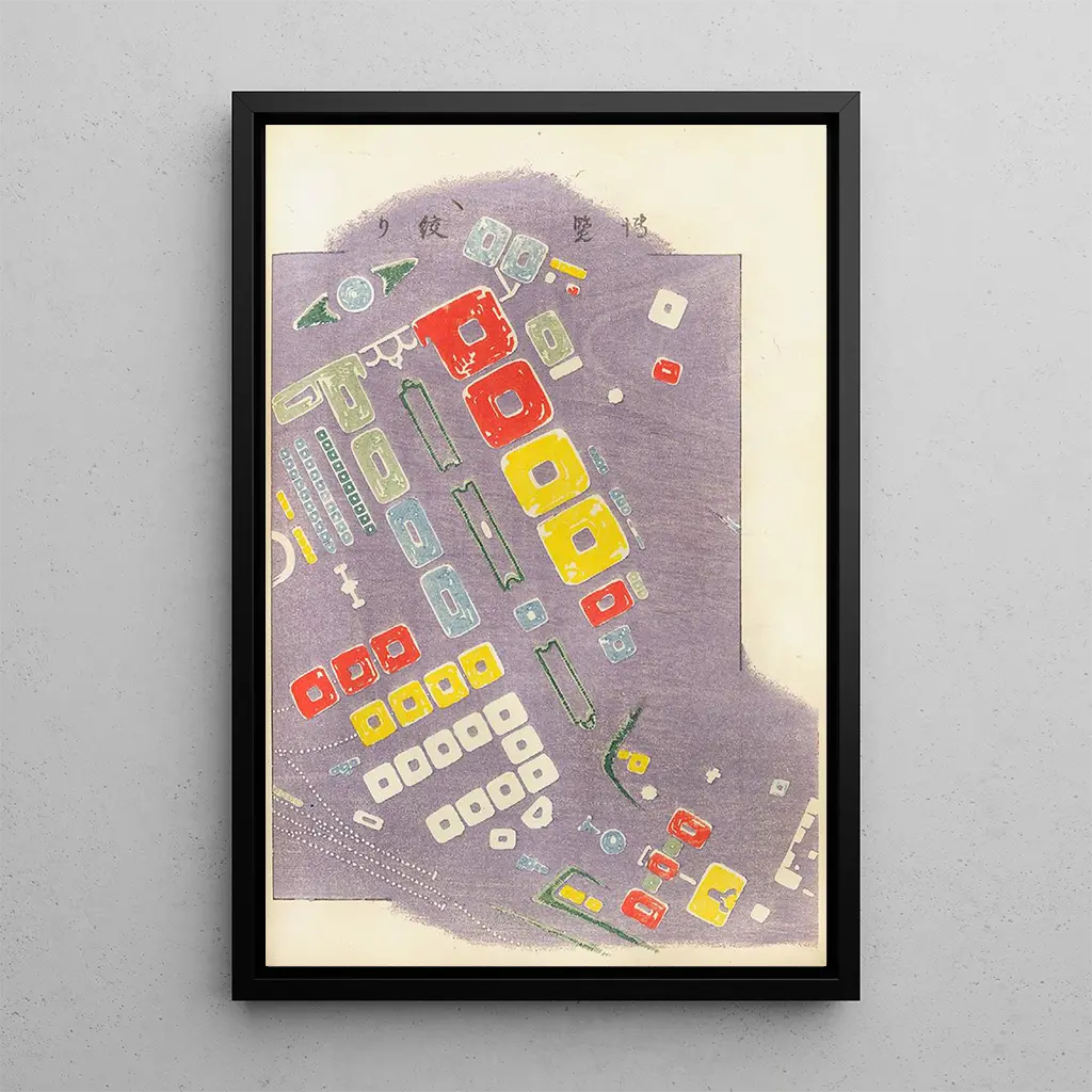 Konsttrycket av Shin zuan Pl 5 förflyttar oss till en värld där mönster vävs samman med oändlig elegans. Färgerna, både livfulla och subtila, skapar en varm och inbjudande atmosfär. Varje detalj är noggrant utarbetad och avslöjar Nakayasu Shinzaburōs mästerskap inom kompositionens konst. Denna duk framkallar en känsla av rörelse, som om formerna dansar framför våra ögon, inbjudande till noggrann och immersiv reflektion. Atmosfären som utstrålas av detta verk är både lugnande och stimulerande, en sann hyllning till skönheten.