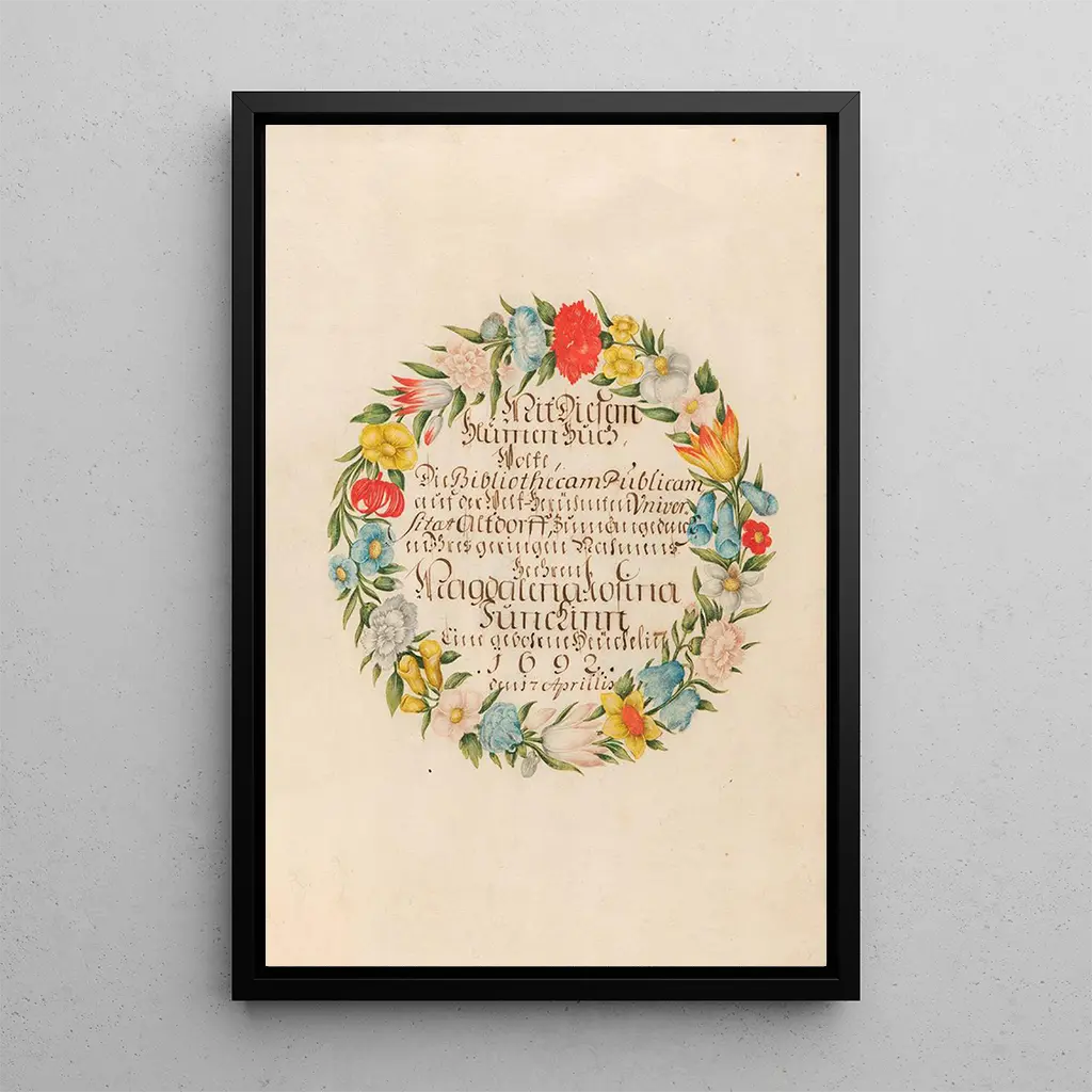 Magdalena Rosina Funck, verksam på 1700-talet, är en framstående figur inom europeisk konst, särskilt för sina verk som kombinerar målning och kalligrafi. Hennes konstnärliga bana präglas av en ständig strävan efter elegans och skönhet, influerad av rokoko- och barockströmningar. Funck lyckades fånga sin tids anda genom att integrera raffinerade dekorativa element i sina skapelser. Hennes arbete med konsttrycket av Page de dédicace med datum visar hennes skicklighet i att förena skrivkonst och målning, vilket gör henne till en pionjär inom detta område. Hennes arv består och inspirerar många samtida konstnärer.