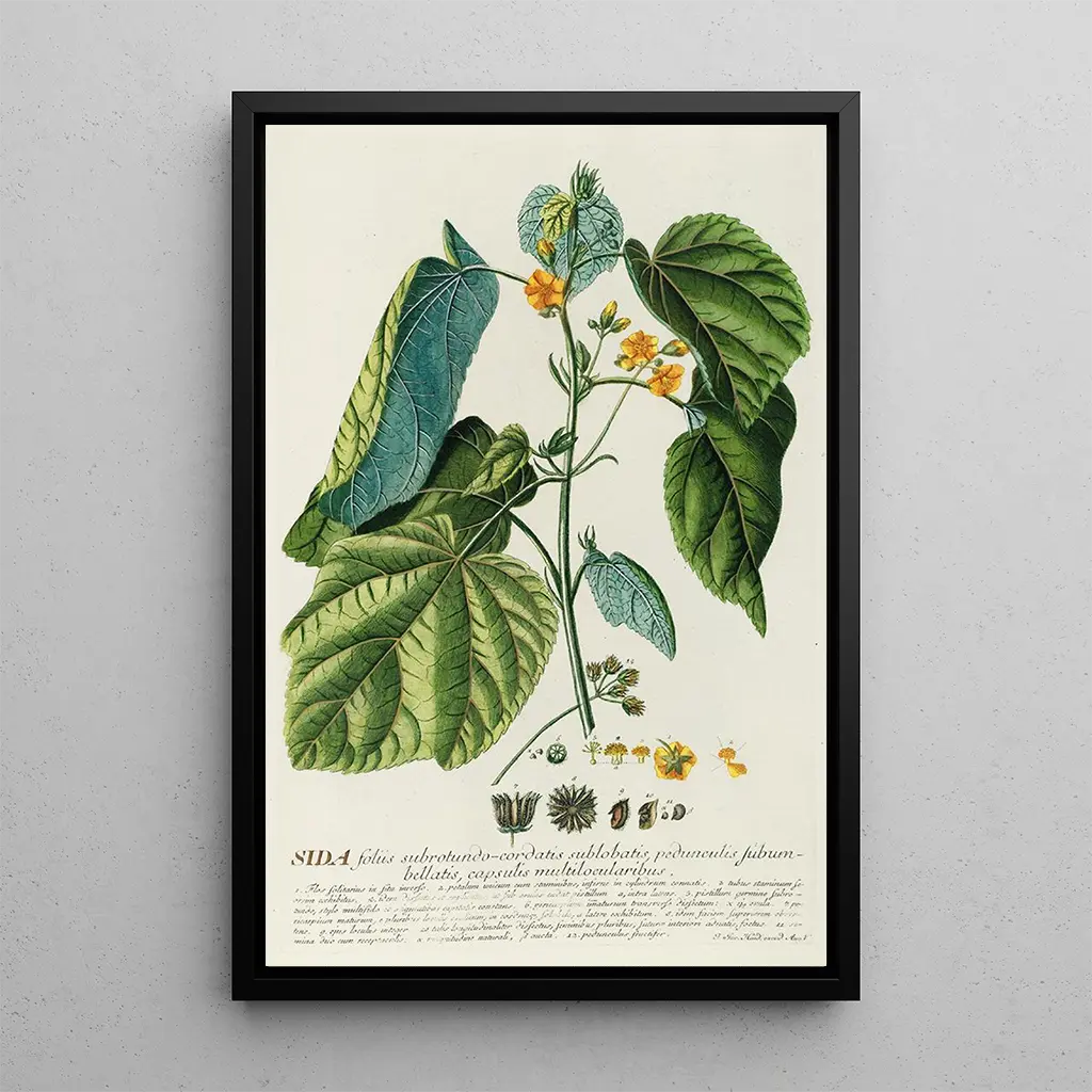 Konsttrycket Sida, av Georg Dionysius Ehret, förflyttar oss till en värld av fascinerande färger och texturer. Detta konsttryck framhäver växten Sida, känd för sina delikata blommor och vibrerande blad. Nyansen av gult och grönt flätar samman sig i harmoni, vilket skapar en atmosfär som både är lugnande och dynamisk. Ehrets teknik, som kombinerar precision och känslighet, gör det möjligt att känna lättheten hos kronbladen och styrkan hos stjälkarna. Detta verk är en sann hyllning till naturen, inbjuder till observation och förundran.