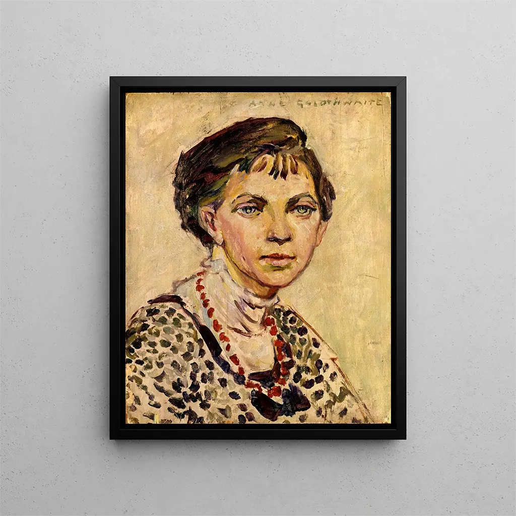 Reproduktion Självporträtt - Anne Goldthwaite – Fängslande introduktion L'Självporträtt av Anne Goldthwaite framstår som ett öppet fönster mot en konstnärs själ med obestridlig talang. Detta verk, fyllt av psykologisk djup och känslig subtilitet, inbjuder betraktaren att dyka in i konstnärens inre värld. Genom denna framställning nöjer sig Goldthwaite inte med att skildra sig själv; hon utforskar nyanser av sin identitet, de känslor som bor i henne och de tankar som driver henne. Ljuset, färgerna och texturerna samverkar för att erbjuda en rik och immersiv visuell upplevelse, där varje detalj avslöjar en del av hennes väsen. Detta första möte med verket väcker en omättlig nyfikenhet, som inbjuder till att upptäcka inte bara tekniken, utan också historien och tankarna som har guidat henne. Stil och unikhet i verket L'Självporträtt av Anne Goldthwaite utmärker sig genom sin unika stil, som blandar en modern ansats med klassiska influenser. Färgpaletten som konstnären valt är både djärv och subtil, och växlar mellan livfulla nyanser och mjukare toner, vilket skapar en atmosfär som är både dynamisk och introspektiv. Penseldragen, som är både precisa och fria, vittnar om en imponerande teknisk skicklighet, samtidigt som de avslöjar en viss spontanitet. Goldthwaite lyckas fånga inte bara sitt fysiska utseende, utan även den emotion som strålar ut från henne, och ger därigenom betraktaren en djup emotionell koppling. Denna blandning av realism och abstraktion gör hennes konstverk till en äkta dialog mellan konstnären och de som observerar den, en inbjudan till eftertanke och självreflektion. Konstnären och hennes inflytande Anne Goldthwaite, en framstående figur i början av 1900-talet, lyckades göra avtryck i en konstvärld i snabb förändring. Hennes utbildning hos stora mästare och hennes engagemang i olika konstnärliga rörelser har format hennes tillvägagångssätt. Hon har inte bara påverkats av modernismen, utan också av de feministiska strömningarna under sin tid, och integrerat teman relaterade till identitet och kvinnans villkor i sitt arbete. Goldthwaite banade väg för många samtida konstnärer, och förespråkade idén att konsten