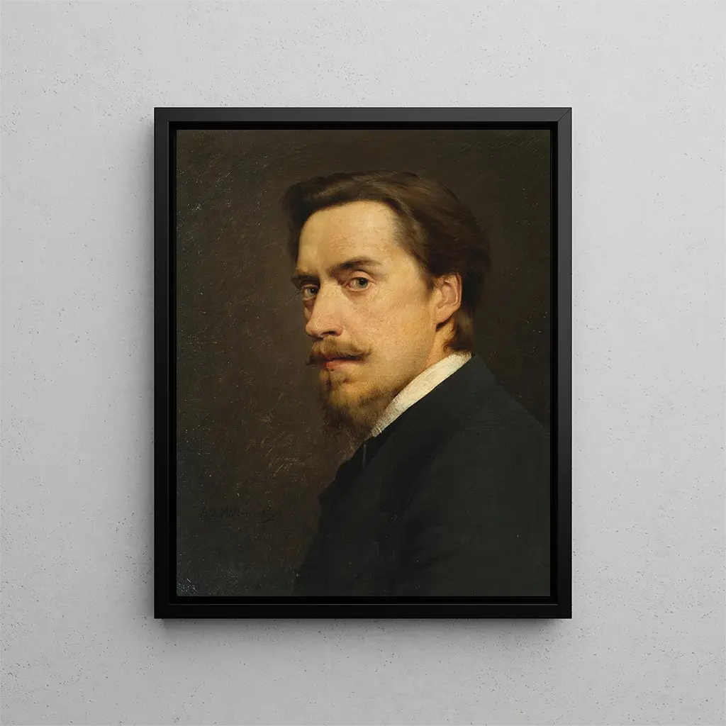 Reproduktion Självporträtt - Anton Müller – Fängslande introduktion L'« Självporträtt » av Anton Müller är ett verk som transcenderar den enkla övningen i personlig framställning för att erbjuda en djup reflektion över identitet och självuppfattning. Genom att fördjupa sig i detta stycke bjuds betraktaren in att utforska nyanserna av den mänskliga själen, samt komplexiteterna hos konstnären själv. Kraften i detta konsttryck ligger inte bara i dess teknik, utan också i dess förmåga att framkalla introspektion hos den som observerar det. Varje penseldrag verkar fyllt av känslor, vilket skapar en intim koppling mellan konstnären och publiken. Detta verk, som är emblematiskt för sin tid, vittnar om en ständig strävan efter sanning och äkthet. Stil och unikhet i verket Müllers stil utmärker sig genom ett djärvt och innovativt tillvägagångssätt. De livfulla färgerna och de slående kontrasten som kännetecknar hans « Självporträtt » vittnar om en obestridlig teknisk skicklighet. Valet av nyanser och hur de vävs samman avslöjar en konstnärlig känslighet som går bortom den enkla framställningen. Skuggor och ljus manipuleras skickligt för att ge liv åt bilden, vilket ger verket en nästan skulptural dimension. Konstnärens hållning, både självsäker och sårbar, väcker en dualitet som engagerar betraktaren. Denna lek mellan styrka och skörhet är en av Müllers signaturer, som lyckas fånga själva essensen av den mänskliga existensen genom sitt konstnärsskap. Konstnären och hans inflytande Anton Müller, en framstående figur inom sin tids konstnärliga rörelse, har lyckats göra avtryck genom sin originalitet och unika vision. Påverkad av de stora mästarna inom målarkonsten, har han ändå lyckats skapa sin egen stil, integrera element av modernitet samtidigt som han respekterar traditionerna. Hans verk är en spegling av en tid i snabb förändring, där konstnärer strävade efter att omdefiniera konstnärskoderna. Müller har inte bara lämnat ett outplånligt avtryck inom konstvärlden, utan har också inspirerat många samtida konstnärer, som ser honom som en förebild för mod och innovation. Hans förmåga att fånga universella känslor genom intima porträtt fortsätter att påverka framtida generationer, vilket gör honom till en oumbärlig figur i konsthistoriens värld.