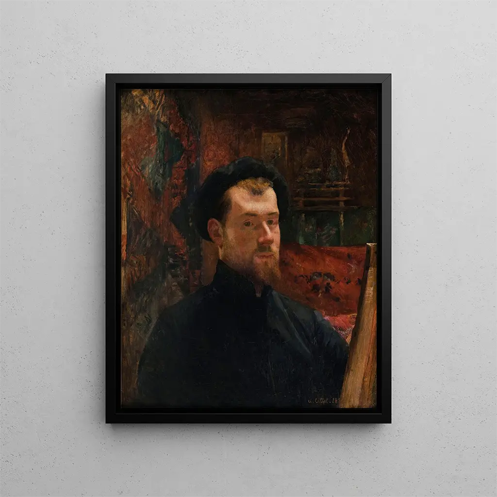 Reproduktion Självporträtt - Charles Cottet – Fängslande introduktion L'Autoportrait av Charles Cottet är ett verk som transcenderar den enkla övningen i personlig återgivning för att fördjupa betraktarens förståelse för konstnären. Genom detta konsttryck, nöjer sig inte Cottet med att måla sin bild, utan utforskar djupen av sin själ, och avslöjar sina tankar och känslor. Detta verk är en inbjudan att upptäcka inte bara konstnären, utan också den konstnärliga och kulturella kontexten i vilken han verkar. Genom att fördjupa sig i detta konsttryck, transporteras betraktaren till en tid då konst var både ett medel för personlig uttryckskraft och en spegel av de sociala och estetiska strömningarna i sin tid. Stil och unikhet i verket Cottets stil kännetecknas av en djärv användning av färg och ljus, som ger hans verk en livfull och dynamisk atmosfär. I sitt Självporträtt, ger de rika nyanserna och slående kontrasten liv åt hans ansikte, samtidigt som de framhäver en viss melankoli. Konstnären leker skickligt med skuggor för att förstärka dragen i sitt ansikte, och skapar en djup som fångar betraktarens uppmärksamhet. Detta konsttryck utmärker sig också genom sin psykologiska ansats, där varje penseldrag verkar berätta en intim historia. Cottets teknik, både impressionistisk och symbolistisk, inbjuder till en förlängd eftertanke, och avslöjar subtila detaljer vid varje blick. Konstnären och hans inflytande Charles Cottet, en framstående figur inom post-impressionismens rörelse, lyckades präga sin tid med en djärv konstnärlig vision. Född 1863, ingår han i en riktning som söker förnya måleriets koder, samtidigt som han hämtar inspiration från mästarna från det förflutna. Hans verk är en spegel av en ständig strävan efter äkthet och inre sanning. Cottet påverkades av landskapen i hans hemtrakt Bretagne, men också av de stora europeiska konstströmmarna. Hans självporträtt, särskilt, är vittnesmål om hans personliga och konstnärliga utveckling. De vittnar om en djup introspektion och en vilja att konfrontera sig själv, samtidigt som de ifrågasätter konstnärens roll i samhället. Genom sin metod banade Cottet väg för många konstnärer som