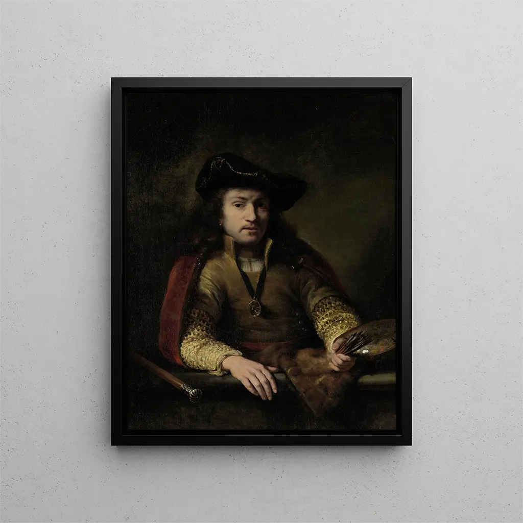 Ferdinand Bol's självporträtt är ett verk som fördjupar betraktaren i en 1600-tals konstnärs innersta väsen, en ikonisk figur från den holländska guldåldern. Denna målning, som utmärker sig genom sin psykologiska djup och tekniska skicklighet, inbjuder till reflektion över identitet och personlig uttryckskraft. Bol, elev till Rembrandt, är inte bara en enkel efterapare; han lyckas tillföra sina verk en unik essens. Genom detta porträtt avslöjar konstnären sig själv, fångar inte bara sina fysiska drag utan även sin själ. Detta verk är ett gripande vittnesmål om sin tid, samtidigt som det är tidlöst i sin självporträttsapproach.