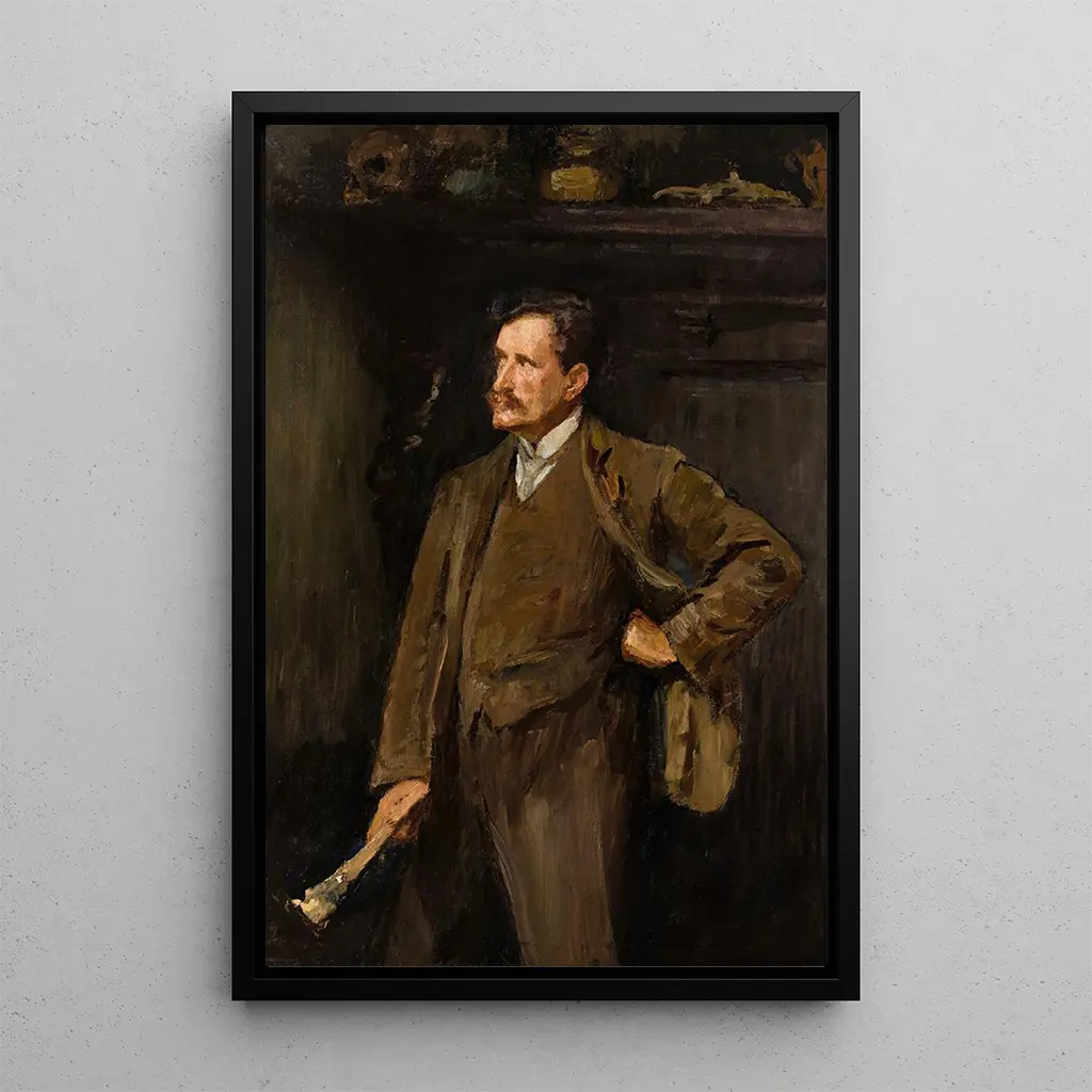 Autoportrait : en reflektion av den konstnärliga själen I detta konsttryck avslöjar Jan Cybis sig med en gripande intensitet. De rika färgerna och de delikata nyanserna i hans palett skapar en atmosfär som är både introspektiv och livfull. Ljuset spelar en avgörande roll, belyser hans ansikte samtidigt som mystiska skuggor omger resten av målningen. Konstnärens teknik, som skickligt blandar realism med ett uttrycksfullt inslag, inbjuder betraktaren att dyka in i hans inre värld. Varje penseldrag tycks fyllt av känsla, och avslöjar inte bara hans utseende utan också en del av hans essens. Jan Cybis: en mästare inom polsk målarkonst Jan Cybis, född 1897, är en ikonisk figur inom polsk konst under 1900-talet. Påverkad av europeiska konstströmmar utvecklar han en unik stil som förenar realism med en modern känslighet. Hans karriär sträcker sig över flera decennier, under vilka han utforskar olika teman, särskilt porträtt och landskap. Cybis är också erkänd för sitt engagemang i det konstnärliga livet i sitt land, och deltar i rörelser som strävar efter att omdefiniera den polska kulturella identiteten efter andra världskriget. Hans verk, rikt på känslor och reflektioner, fortsätter att inspirera många samtida konstnärer. En dekorativ konsttryck med många fördelar Detta konsttryck av Jan Cybis utgör ett perfekt dekorativt inslag för att berika ditt boende. Oavsett om det är i ett vardagsrum, ett kontor eller ett sovrum, tillför detta konsttryck en känsla av äkthet och djup. Kvaliteten på konsttrycket garanterar en enastående trohet mot detaljerna i originalverket, vilket gör att du kan njuta av varje nyans av färg och varje uttryck. Genom att integrera detta konsttryck i din inredning, inte bara förskönar du ditt hem, utan du bjuder också in en del av den polska konstnärliga historien, vilket skapar en dialog mellan dåtid och nutid.