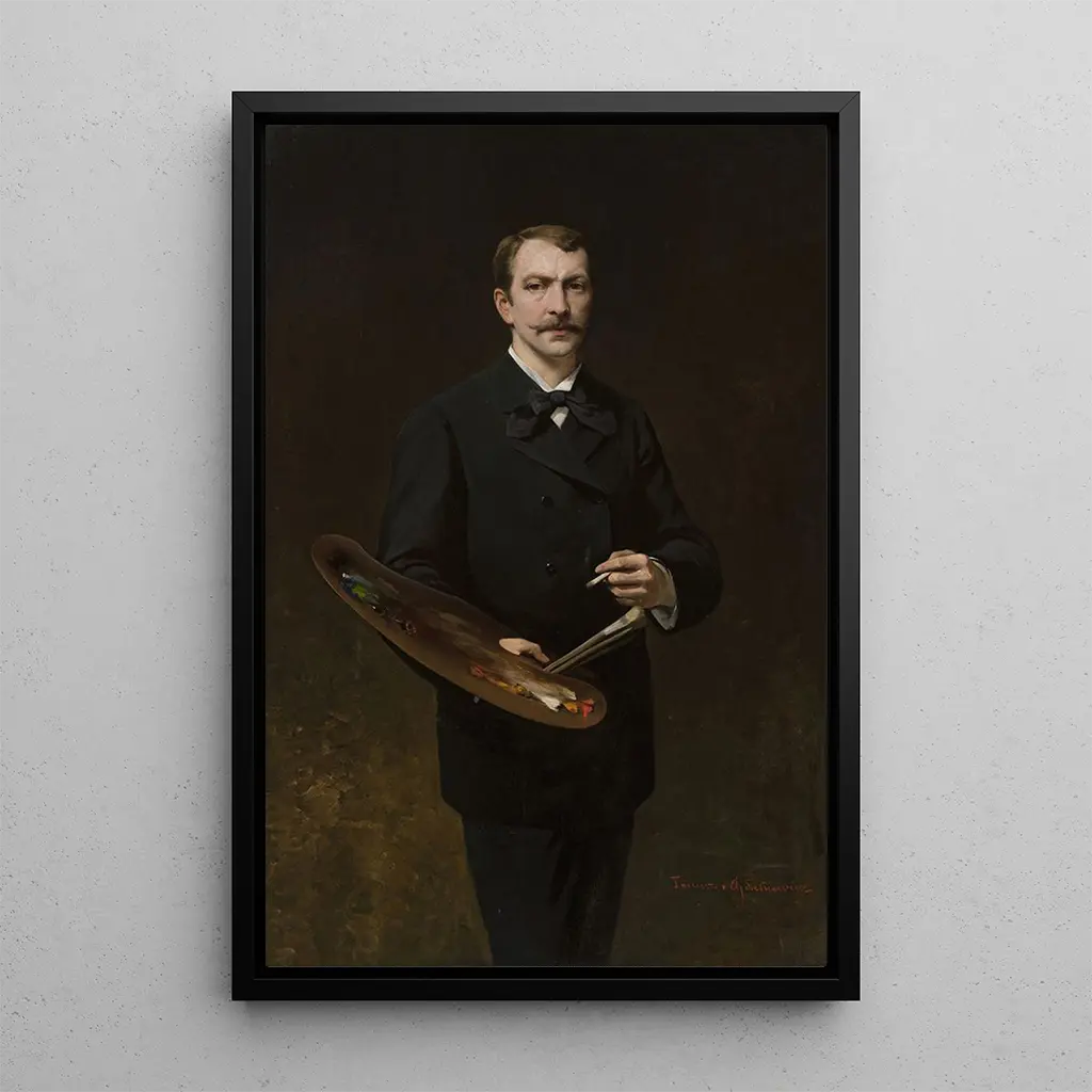 Autoportrait med palett: en reflektion över konstnären och hans universum I "Autoportrait med palett" fördjupar sig Tadeusz Ajdukiewicz i en värld där konstnären avslöjar sig själv med en palett i handen, symbolen för hans passion och kreativitet. De livfulla färgerna och de dynamiska penseldragen ger en påtaglig livskraft till detta konsttryck. Kompositionen, centrerad kring konstnärens uttrycksfulla ansikte, fångar omedelbart uppmärksamheten, medan den suddiga bakgrunden antyder en atmosfär av koncentration och introspektion. Denna konsttryck är en verklig inbjudan att utforska konstnärens själ, att känna hans engagemang för konsten och att uppskatta skönheten i hans teknik. Tadeusz Ajdukiewicz: en mästare av den polska realismen Tadeusz Ajdukiewicz, verksam i början av 1900-talet, är erkänd som en av de främsta representanterna för realism i Polen. Påverkad av de konstnärliga strömningarna i sin tid, utvecklade han en unik stil som förenar precision och uttrycksfullhet. Hans utbildning vid Krakóws konstakademi möjliggjorde utforskning av olika tekniker, men det är hans porträttansats som utmärker sig. Ajdukiewicz har ofta fångat vardagliga ögonblick, och avslöjar djupet i mänskliga känslor genom sina verk. Hans arv består, och inspirerar många samtida konstnärer att utforska den mänskliga själ på liknande sätt. En dekorativ konsttryck med många fördelar Konsttrycket av "Autoportrait med palett" är ett perfekt val för att försköna ditt hem, oavsett om det är i ett vardagsrum, ett kontor eller ett sovrum. Dess tryckkvalitet garanterar färg- och detaljtrohet, vilket gör att du kan känna hela kraften i det ursprungliga konstverket. Detta konsttryck fångar ögat och väcker samtal, och tillför en touch av elegans och kultur till din inredning. Genom att integrera detta konsttryck i ditt utrymme, lägger du inte bara till ett dekorativt element, utan bjuder också in konstnärens historia och passion i din vardag.